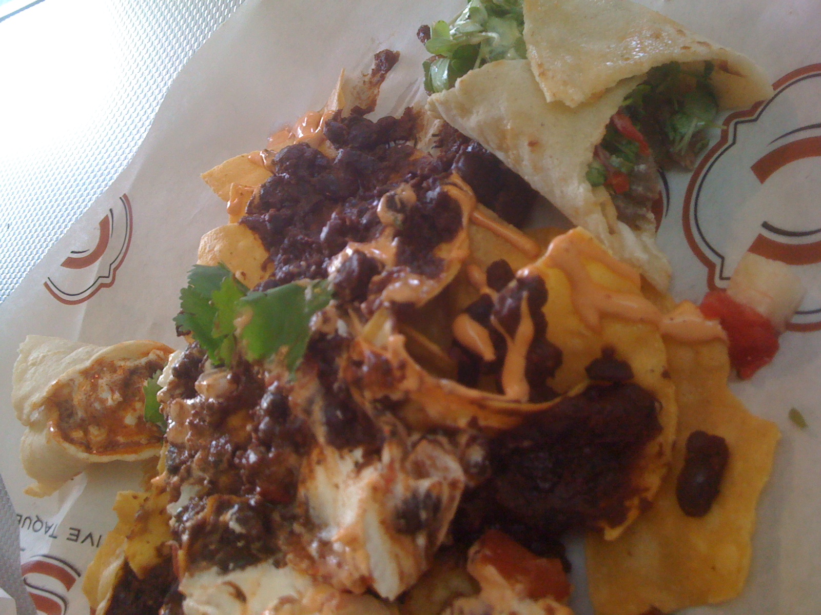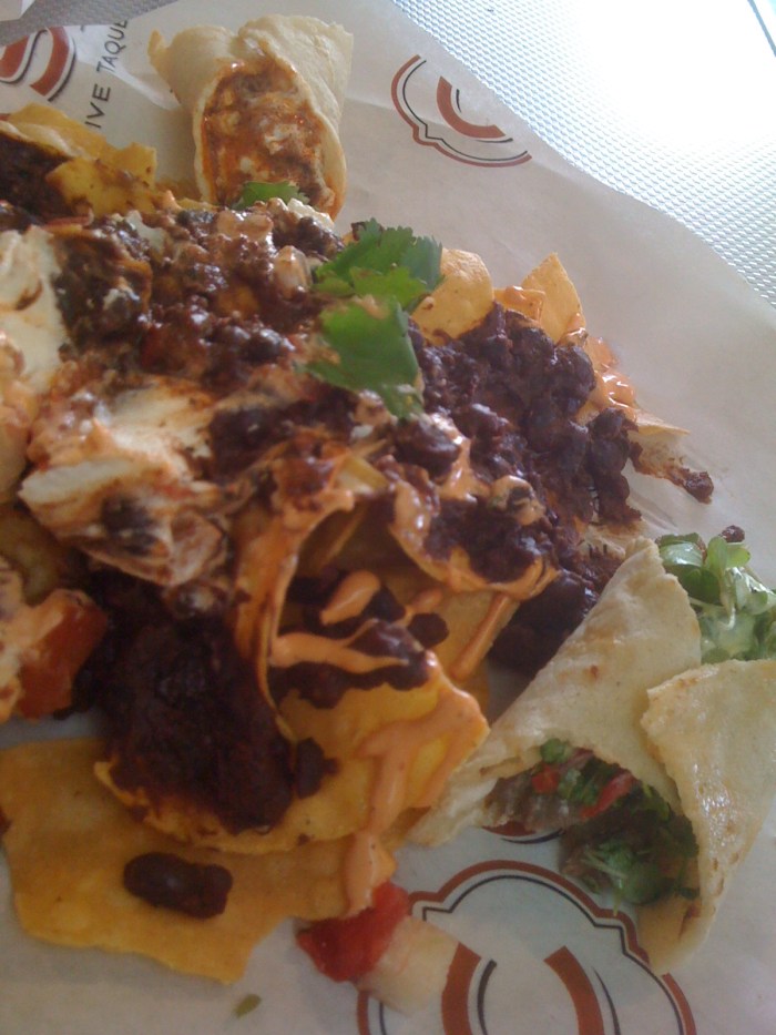 This is not the surprise. This was lunch. It was from one of the indoor vendors named “C Casa Taqueria”. There are two soft tacos (one was spiced lamb with mint and goat cheese – we can’t pronounce the name of the other one) and some delicious nachos. I don’t know if we were hungry or what, but these were better than Distrito!
