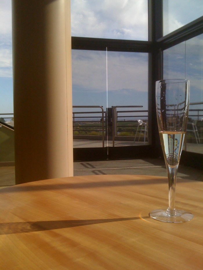 This is Artesa winery. We were psyched to visit because the first bottle of wine we ever bought was an Artesa. As you can see, the view is beautiful from their estate. The grounds are spectacular with nice/modern/faux-infinity-pool fountains and a very modern-looking facility. But the people … suck. First off, the bar was mobbed. I guess I can’t fault Artesa for that – it must be because the wine’s really good, right? We reasoned that this was surely because they had improved a lot since that first cab we had some years ago (our recollection was that it was … not so hot). But when I wiggled in to the bar, the bartender completely ignored me. I reasoned that maybe it was because I was at the very edge of the bar without room for a proper tasting. So g and I walked around, looked at the pretentious art, relaxed on the outdoor patio, and took in the view. Gorgeous. Then we returned to the bar. This time, the bartender acknowledged we were there but was completely unwilling to do anything more than absolutely necessary. No history of Artesa. No description of the wine. Not even a “welcome to Artesa!” (although he did make sure to correct my pronunciation of Artesa – it’s Artesa, not Arteesa). I even gave him opportunities to talk to us by asking open-ended questions … but no – he wasn’t having any of it. Furthermore, only “club members” are given a splash of their higher-end wines, which I am totally fine with – but the delivery was more of a “neener neener” attitude than a “I’m sorry, I wish I could give you a splash, but I can’t” attitude. By the way, none of their offerings are at all that expensive/exclusive versus whatever else can be found in Napa, so they can keep their single-vineyard wines. Conclusion: we had come full circle to Artesa after 7 years … and now we’ll never again consider buying another bottle of their crappy attitude. Also – I’ve seen sippy-cups with thinner walls than their champagne flutes … just sayin’ …