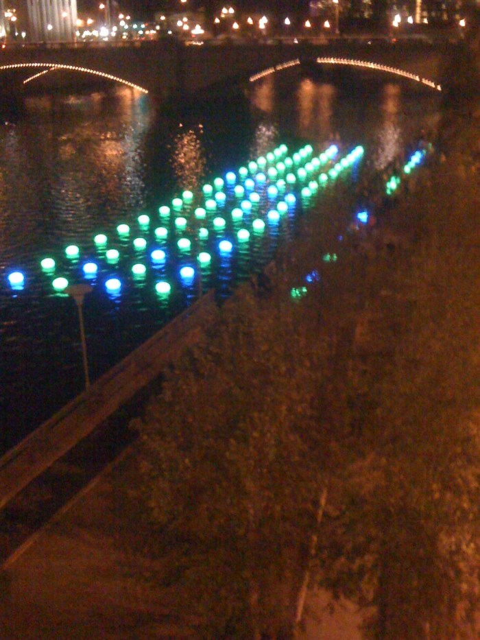 It was kind of cool. There was a crowd of people on the bank below (I was on the skywalk between Chestnut and Market) as well as someone speaking, periods of applause, and a decked-out photographer (tripod, big flash, etc). There was also some info about the installation on the skywalk, but I was far too eager to get to JG Domestic to even bother with reading …