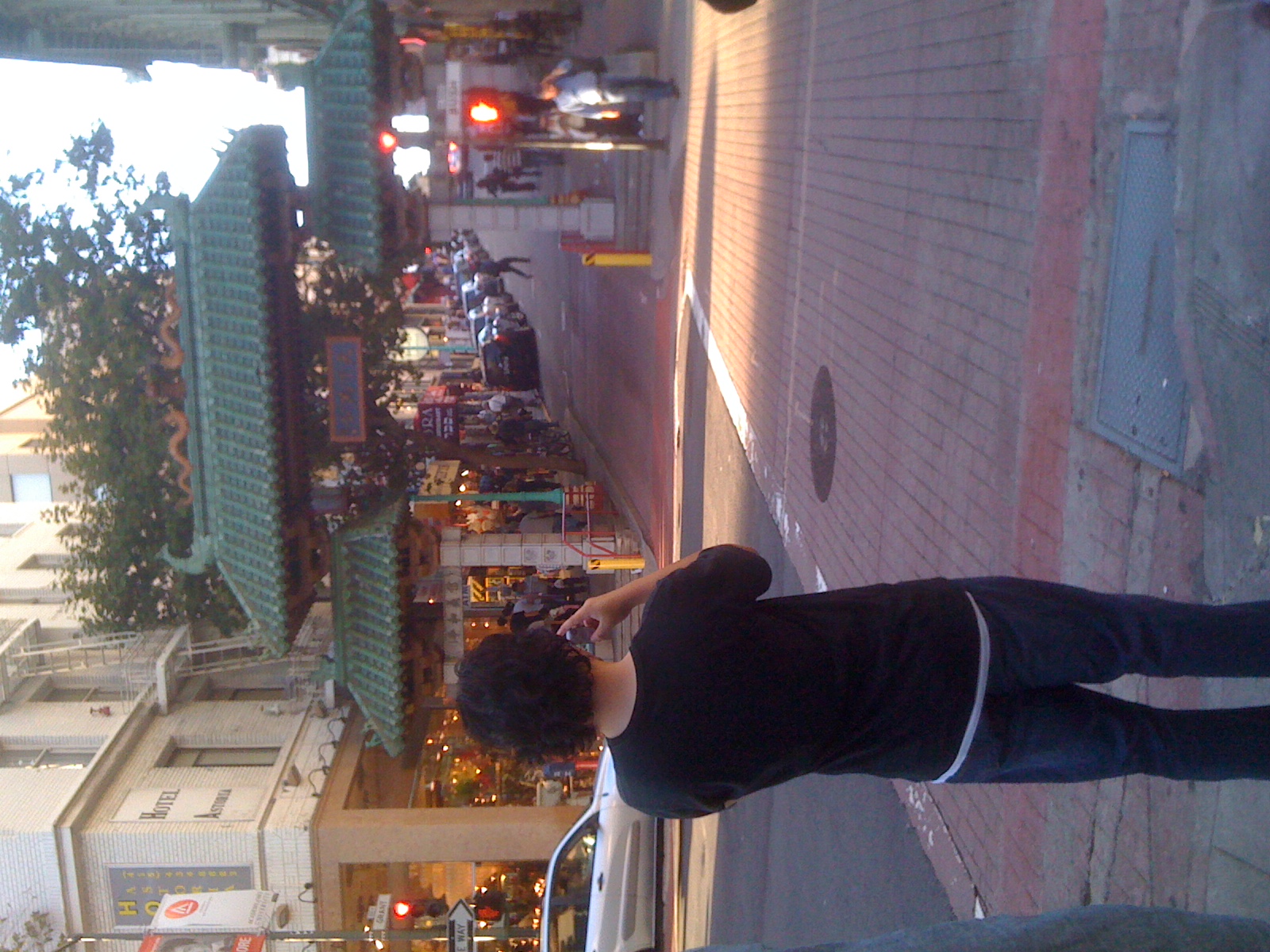 Ok … so we unpacked … one of us was a little happier than the other one of us. But we put the hotel behind us and got down to the first order of business: check out Chinatown. It was nearby and it was too late in the day to take a bus tour of the city. The thing is … we didn’t know precisely where in Chinatown we should go – we just saw the letters on a map, but that doesn’t mean that the entire area is a great place to visit. Well … we were unlucky … we ran into real Chinatown far before tourist Chinatown. What’s the diff? Real Chinatown has a lot of Asian people around (I daresay Chinese people, but I don’t know if they were all Chinese), including very slow walking old ladies and stoic, loogie-spitting old men. Kind of gross. But we eventually did get to tourist Chinatown, which was full of … white people. All those caucasians were walking around, taking pictures, and generally getting in the way. It was fun to see all of the stores peddling their trinkets and restaurants advertising their dim sum. It was in Chinatown that I found out my new favorite way to take pictures … I like taking pictures of people taking pictures!
