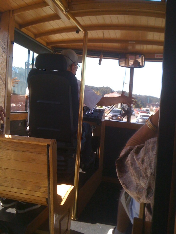 Yea, that’s right. The anthem ended right then and there. You see, there was a rather disgruntled passenger on board. She had been cursing at random people (including the voice of the car operator) just before the kids had come on. She did not appear to be a tourist, rather, an SF local. Judging by her appearance, I’d say that she was one of SF’s homeless population, but maybe she was just really really unkempt. She apparently did not want to join in the dorm song. Thank goodness. I didn’t want to sing it, either, but she gave us all a reason not to not say a peep. We rode in complete silence from that point on … except for the random shouting at fictitious people from the disgruntled lady.