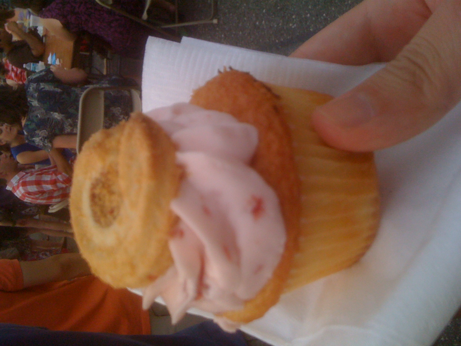 g and I decided on a hammer-and-anvil strategy. While she waited in line as the anvil, I was the hammer that went off on my own to search for foods could be had for faster. It was hot as bwawls (that’s not a typo), so I craved something cold. The drink lines, even for the lemonade, were very long. And then I spotted Jimmy’s (“Jimmies”).