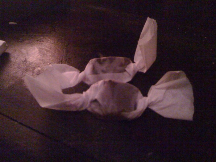 The chocolates arrived at our table in a cigar box, which also housed our check. This would have been clever if the box were smaller to more appropriately fit its contents… and if it had ANYTHING to do with whatever this restaurant’s concept is.