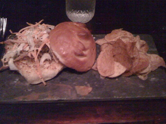 – pork belly: way too much bread, which actually overpowered the pork (t interjects: of course, they could have just had more pork – you can barely see it through the slaw!)