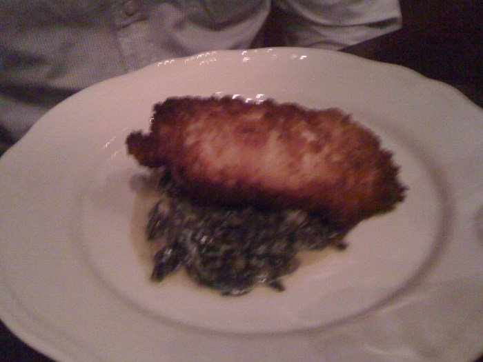 – chicken: chicken was good, but creamed spinach too mushy