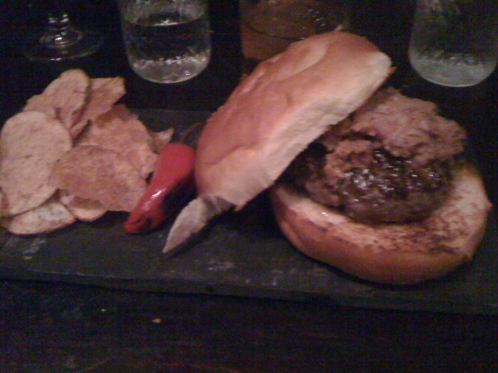 – burger: the meat was dry, the bacon jam a gross consistency (and just not pretty), too much bread, not enough cheese