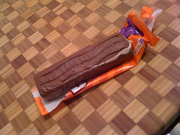 t says: Candy bars intrigue me – especially candy bars from “foreign lands”. While England is not exactly an exotic country, they do do things a little differently there and some people swear that it’s better. Having had only a handful of test subjects, I can neither confirm nor deny these statements. But! Go ahead and check out this bar that g, cm, and I found at Capo Giro.