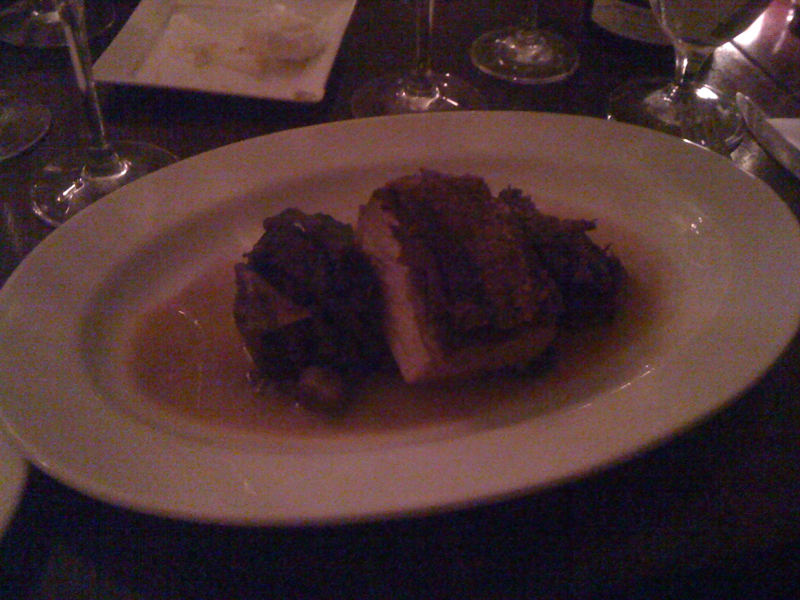 Re: Berkshire PORK BELLY: Holy crap- this thing was porktastic. One of the first times i have the PORK BELLY expertly crisped on the outside but the meat still easily falls apart- you could eat with a spoon. The escarole was nice cut to the fattiness of the meat and buttery sweet potatoes but I think there needs to be a more stronger cut to balance that fattiness. The sweet potatoes were the perfect accent of delicate sweetness to the meat and again was expertly prepared, it so well caramelized. PS If your really nice to the waiter they may offer Sirachi- which for one bite of the PORK is nice (but I love spice).