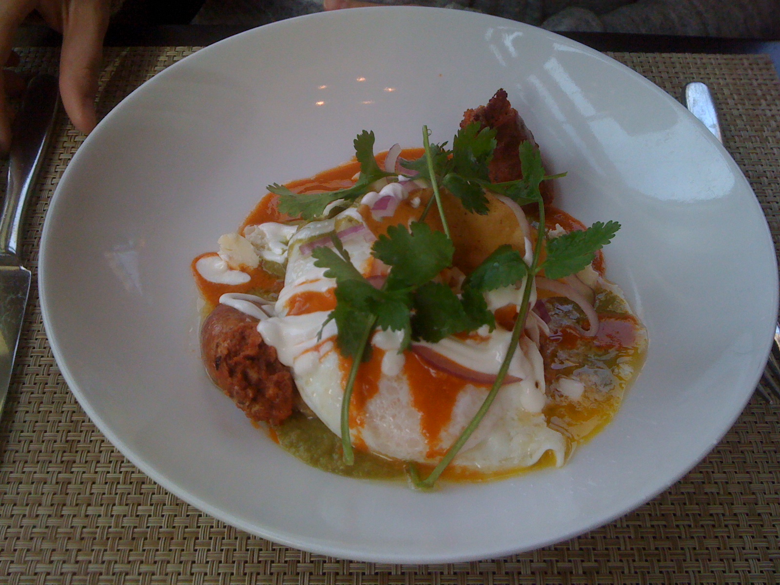 g went for the chilaquiles navidad, fondly remembering the chilaquiles from San Francisco’s Ferry Building Market. Supper’s rendition was a bit more, shall we say, “refined”.
