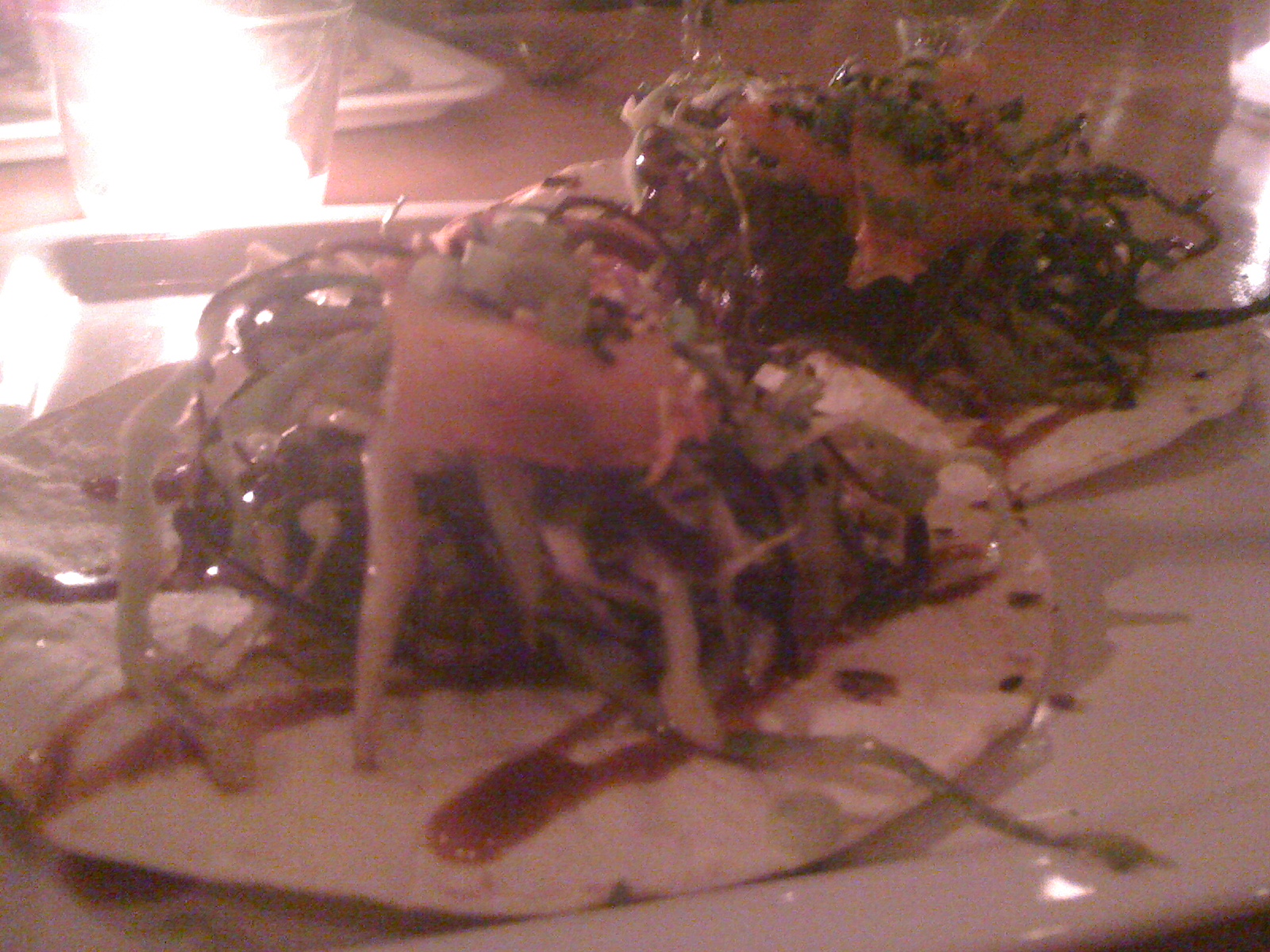 They had some vegetarian Korean tacos and some shortrib ones. I ordered two shortrib ones and looked forward to the happiness that would almost certainly ensue. I was served these two tacos, and, with a smile creeping across my face, wrapped one up for the first bite. I went for it. I chewed and chewed. But something was wrong. It had the same ingredients as before: tortilla, sauce, kimchi, shortrib, shredded veggies … what was wrong? The ratio of shredded veggies to shortrib was off, with a substantial amount of shredded greens filling up the taco. The meat, itself, wasn’t as tender as I remember and, weirdly, it didn’t taste as succulent as before – it was drier and not booming with Korean flavors (the shortrib didn’t taste anything more than shortrib). The kimchi and sesame seeds were nice and all, but only a small amount was included. What happened to my beloved Korean taco? I don’t know. It was … mediocre! Egad! It wasn’t the stuff that’ll invade my daydreams and make me salivate as I type. I guess it’ll have to live on in my memories …