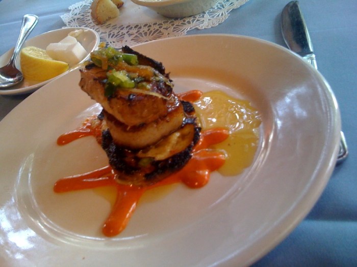 So it doesn’t look like much … but let me tell you that it was a radical kick to the mouth. Aside from Koo Zee Doo’s milk-poached polpo at dinner, this is the best octopus I’ve ever had. I mean, it beat out Amada’s polpo for crying out loud! I’ve only had it once, so maybe I should re-try it just to make sure it wasn’t a fluke before making such statements … The octopus, itself, is nicely cooked, being tender and not rubbery, but what really makes the dish is the “everything else”. Now, there was a lot going on and at the time, I didn’t scrutinize the menu enough to memorize the ingredients, but there was some fennel, some sundried tomato, and something with a bit of kick. It was zingy and light and sweet and spicy all at the same time. No, it doesn’t look pretty (it looks kind of ugly, actually), but it was awesome!