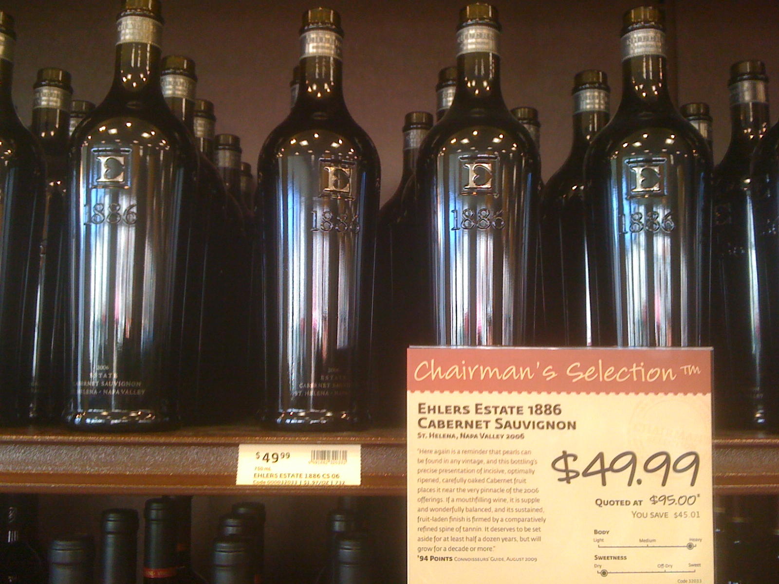 2006 Ehlers Estate “1886” (USA, CA, Napa, St. Helena; $49.99 at PLCB) First off, note the sexy bottle. This is one of the few times when you’re allowed to judge the book by its cover. It’s pretty! Also note the heart-shape hiding in the E (n.b. it’s not an anatomically correct heart). So what gives? Well, you see, Ehlers Estate began with Jean Leducq, a philanthropist who started the Leducq Foundation, a not-for-profit organization dedicated to funding international cardiovascular research. As a future cardiologist, I approve of this link between drinking wine and increasing cardiovascular health (albeit indirectly) because it turns out that that whole “a glass of red wine a day is good for the heart” might not actually be true. That’s a shame … oh well … Ehlers to the rescue!