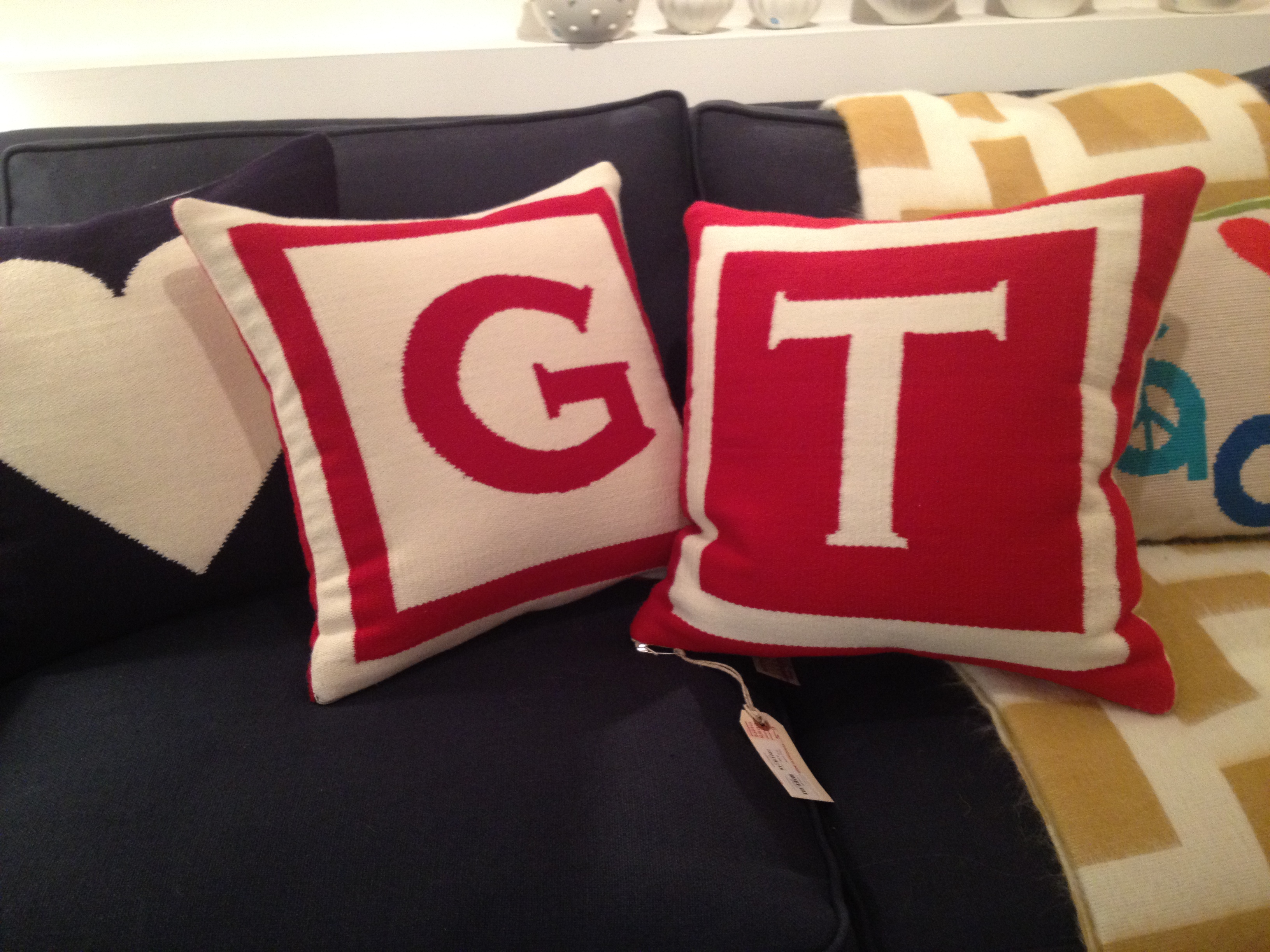 t says: The other day, g and I were shopping in a ritzy Philly home furnishings store and came across as couch with these cute lettered pillows. And I swear to you here and now that the two letters that were on the couch when we got there were those pictured below: