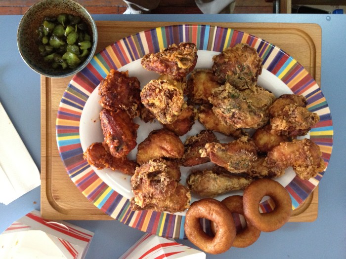 t says: The other day, a and v decided that it was time to rectify a wrong. We had had Federal Donuts’s donuts, but not the fried chicken. So we set out to fix the problem: