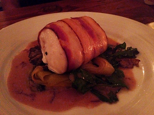 One of our friends opted for bacon-wrapped <insert fish here>. As you can see, I forgot what the original fish was, but I know that after she had ordered, they informed her that they were instead wrapping halibut in bacon that night. She agreed to the change, and this is what emerged. And you know what? She won dinner. This fish was wonderful. It reminded me exactly of the kind of fish that would come out had we been eating at Little Fish. The vivid bacon flavor absolutely blew me away. And if that wasn’t enough, the fish cookery was other-worldly-amazing. I don’t know if it was a fluke or something to have cooked fish so perfectly (we only had one fish dish at the table), but I’d definitely try out a fish dish the next time I go.