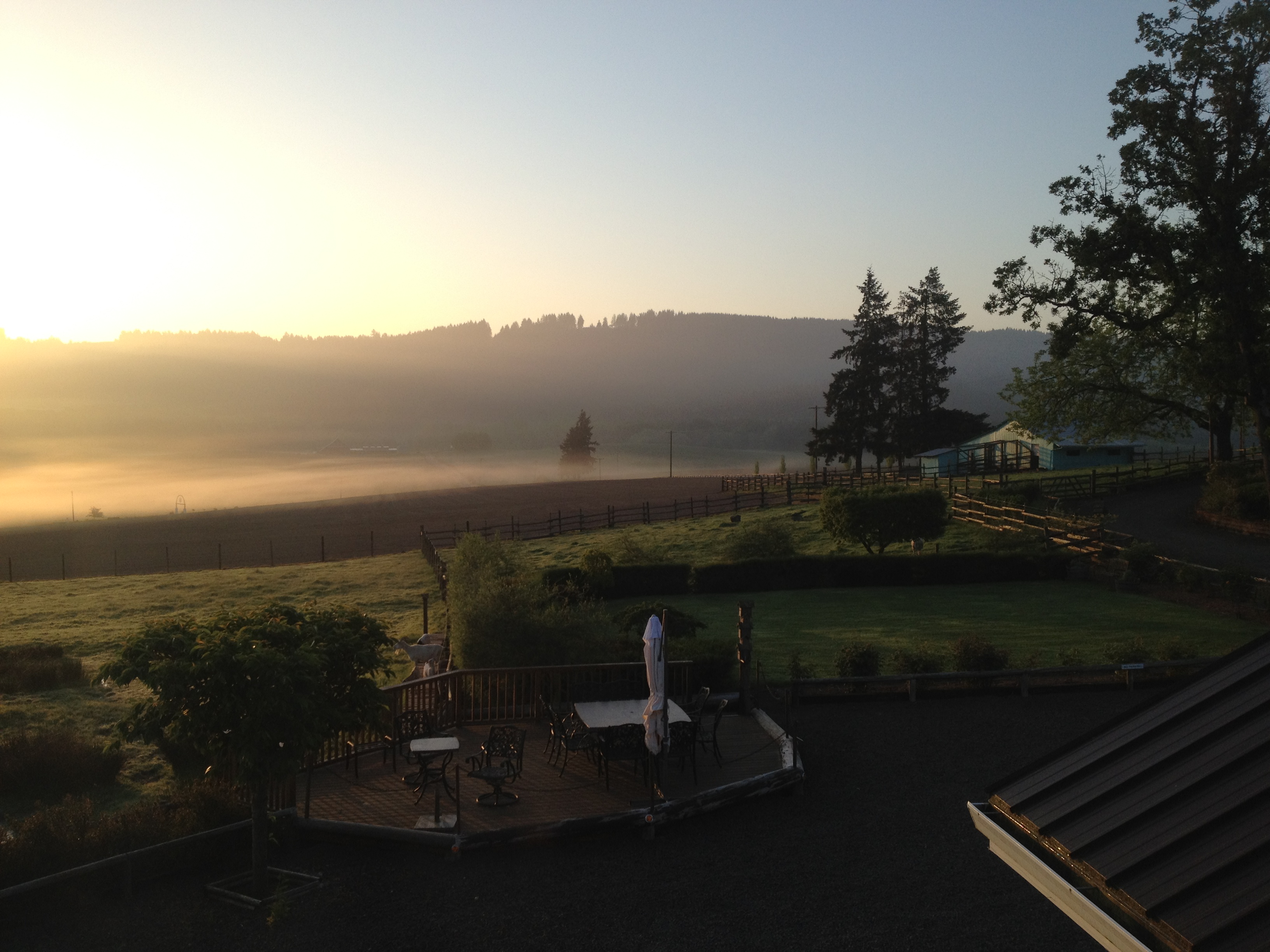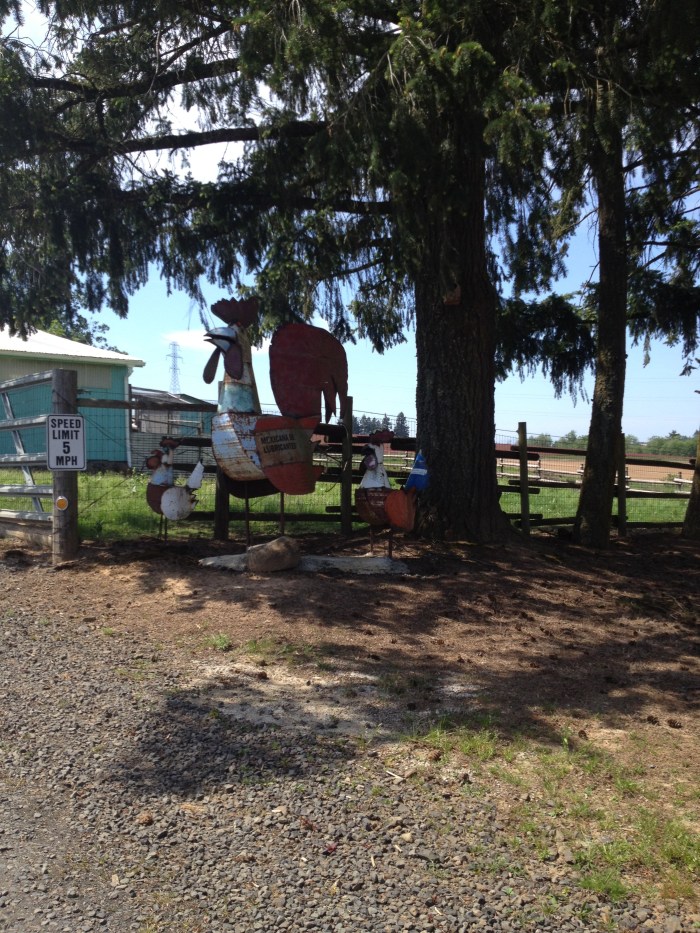 So now you must be wondering: “What’s ‘the deal’ with Abbey Road farm?” There’s a farm and there’s a BnB. Together. It’s a pretty cute place! The farm is small but legit (it has chickens, alpacas, llamas, sheep – all roaming about certain sections of the land). The farm’s proprietors, John and Judi, are a super-sweet couple who just really wanted to own a farm and found that they had the means to do so … and so they did! From what we gathered, John (a very nice man) is full of ideals and further allowed to live out those ideals by virtue of having made a crap-ton of money in Las Vegas (something to do with insurance companies and hotel management). However he attained the funds to buy the place, we don’t care, because the experience was absolutely wonderful. We do want to note that John admits that he runs a “Gucci farm” – meaning that while he and his wife have done their best to learn and perform the activities necessary for farming, they do enlist the help of others to make sure things are done properly. I’m not sure who’s idea the BnB side of the property came from, but however it came to be, it’s very well executed. The rooms had everything we needed, the breakfasts were tasty and filling, the price was reasonable, and it was so pretty/peaceful that we often just brought back food to the BnB to eat on that patio while gazing into the distance (it was so much better than staying at a room in some hotel in one of the tiny towns like Dundee or McMinnville). As a sidenote, this property is also next to Trappist Abbey, which John somehow helped to become a perpetually preserved/conserved land, so no matter now commercial Oregon becomes due to the wine trade, he’ll always have trees in his back yard. Brilliant! More sidenotes: they make their own goat’s milk cheese (the lemon zest chevre is AWESOME), and John’s currently trying to bring a farmer’s market to the property for locals and foodies to enjoy.