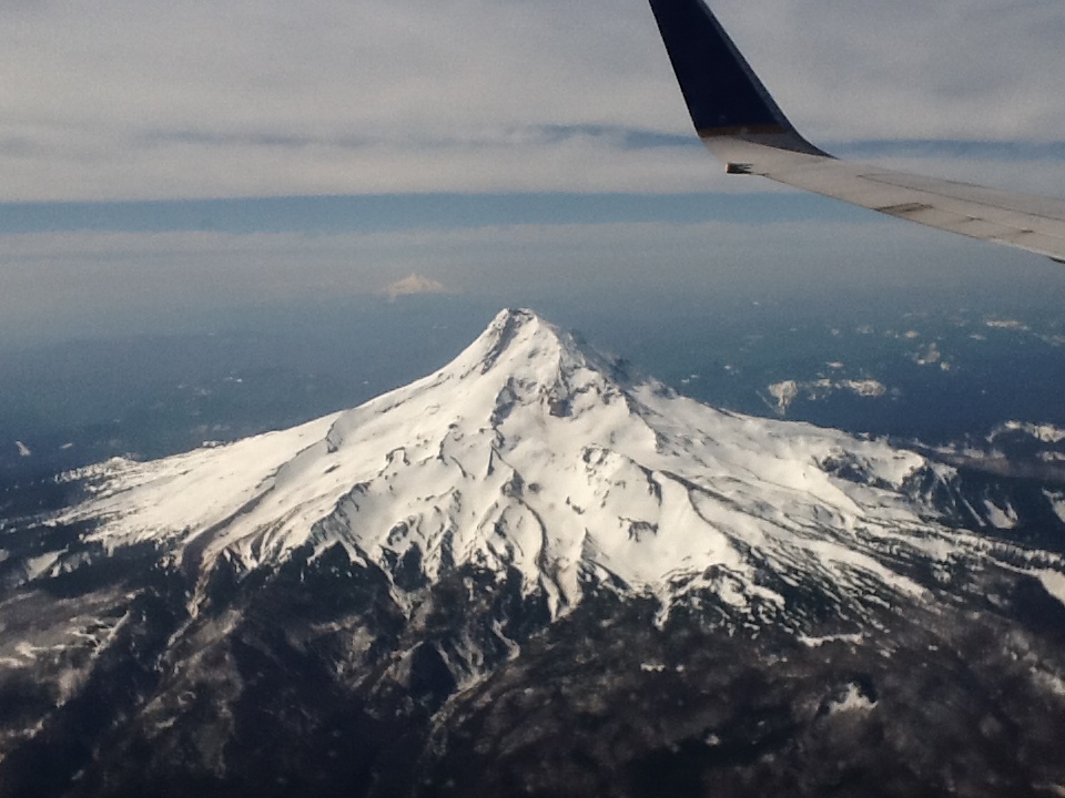 We started our trip to PDX with a 6am flight to Newark. That’s right: our destination was Portland, but we had to fly east to Newark first for a 1-hr layover, and then fly directly to PDX. This is humorous/stupid for a few reasons. The first is that it’s kind of a waste of time to put up with air travel for such a short commute; I’d bet we’d spend more time boarding and de-boarding the plane than actually in the air. Furthermore, I’d also be willing to bet that a bus would get us to the Newark airport faster at 6am. The second bit of humor/stupidity is the cost. Direct flights from PHL to PDX are in excess of $800, while the above one-stop flight was below $300. I tried to get crafty and find some way to drive to Newark the morning for a flight directly to PDX … and found that that, too, costs over $800. I contemplated just booking the PHL –> Newark –> PDX flight and just catching the Newark–>PDX leg, but feared that they might cancel our seats or something if we didn’t show up in PHL … Alas, we just “went with it” and flew from PHL to PDX via Newark … leading us to the last bit of funny … g and I were super-psyched that we were in seats 8A and 8B for the first leg, because that’d mean that we’d be towards the front of the plane, so we’d have an opportunity to de-board quickly at Newark so we could scramble to our next gate. Turns out that the plane only had 9 rows. Nine rows! This plane was t-i-n-y (e.g. I knew every seat was full because I could easily SEE every seat). It was so tiny that ALL wheely luggage carry-ons had to be checked. As a matter of fact, it was SO tiny that it still had real-deal, legit propellers on the wings! Propellers! Had our phones been on, we would have provided you with a pic!