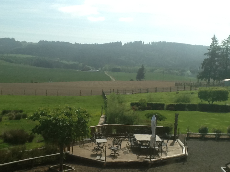 alpine room view on a clear day (and you can see the patio we used for dining) – picturesque vineyards stretch out to the left, but we couldn’t fit them in the picture …