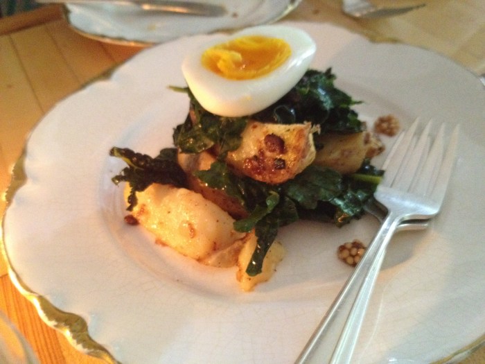 So, the lamb tongue wasn’t presented in exactly the way I thought. I thought that a hunk of tongue was going to be cooked slow and then grilled at the last second. Instead, this was fine slices of meat mixed with other interesting salad-like ingredients. Ultimately everything did taste great, but I think people who go ga-ga for this dish are just falling for the hype of “eating tongue”, to which I am no stranger (and this didn’t taste particularly lamby, either). And, unfortunately, it paled in comparison to g’s app …
