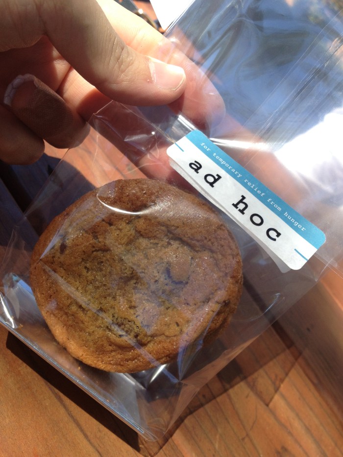 and here it is: an Ad Hoc cookie … the base recipe for my own cookies … i kinda-gotta-say it: I like mine better – a darker chocolate and a lighter cookie in both flavor and texture – sorry TK!