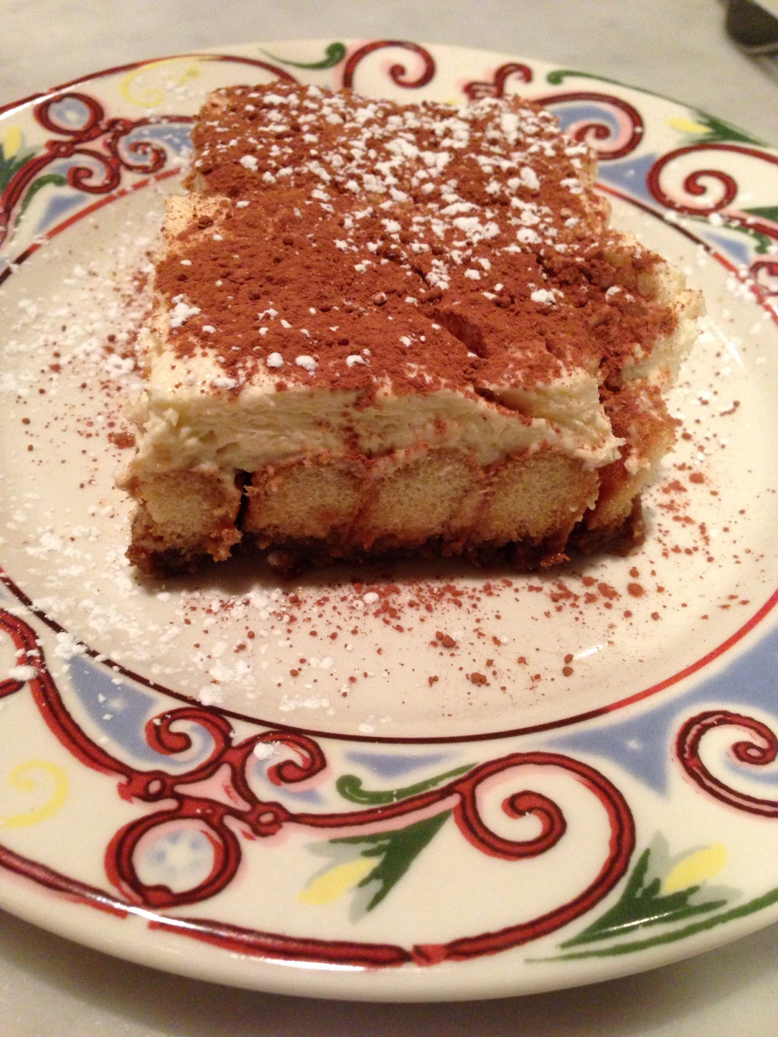 We went for pastas (we’re predictable like that). Both dishes featured perfectly-textured pasta with just the right amount of bite. The sauces were insanely simple. The added meats/seafood/veggies were tastefully done. But in actuality, nothing was at all that “deeply flavored” … for example, these pastas are not Melograno-tasty, and they’re not going to knock-your-socks-off. Rather, these were bowls of pasta that some Italian grandmother would make and the younger generations strive to emulate. They did fill us up (the servings are large – don’t let the ridiculously-super-XXXL bowls above throw you) and completely disarmed us – this was comfort pasta, seemingly designed to lull you into a state of relaxation that brings to close an otherwise crazy day. With no thought required to eat this food (“simple” is good, right?) our conversations ran wild, from stories of growing up in South Jersey, to lost stethoscopes, to who-we-hoped-would-date-whom. And before we knew it, we were lingering over the last few drops of wine in our glass, realizing it was time to go to our actual home. Well – we did have some dessert in there, too: