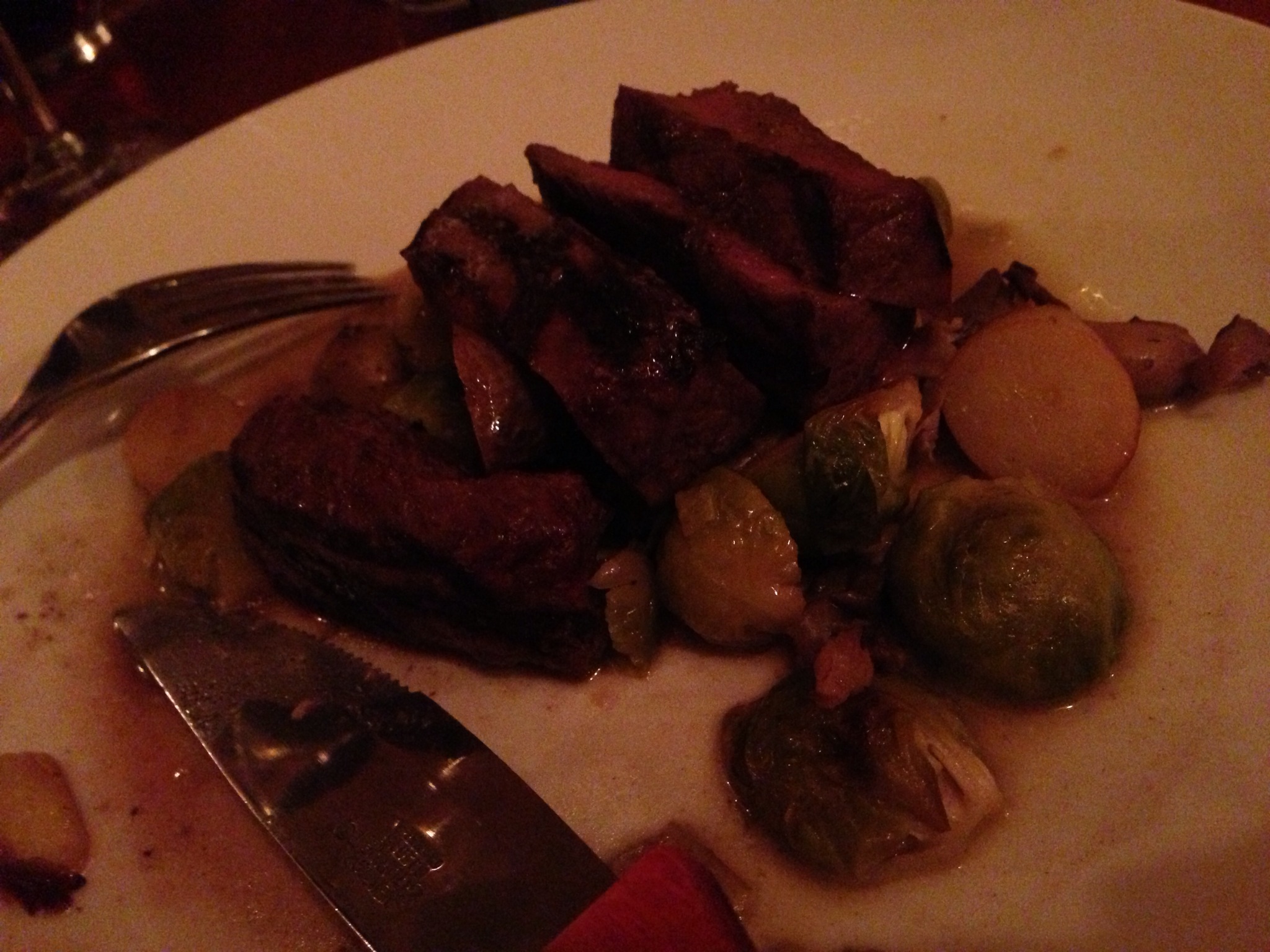 The sprouts: pale, no char, no texture. The steak: pale, minimal Maillard, no flavor. The jus: insipid, no salt, no pepper. People! It’s a steak! It’s a steak and Brussels sprouts! It was popular in 2009! If the $25 all-you-can-eat steak is better than yours, you should just take steak off the menu so you can stop breaking the hearts of customers. No matter how good dz’s entrees looked, nothing can save a restaurant from a bad steak … the mediocre salmon and stale duck nachos didn’t help either. Consequently, I have no choice but to withhold adsz’s stamp of approval (actually … it makes me wish we had a stamp of dismissal … can I do that?). Fortunately, the company was good, and the glass of wine was deep …