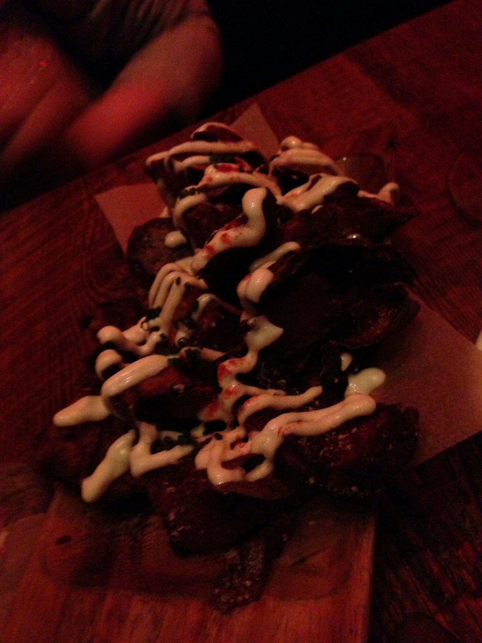 So … the papa frita … It’s normally a deliciously fried seasoned potato. And the one thing jamonera did superbly was frying it – I have never had so wonderfully-a-crisped potato. But they were missing one very important aspect of the dish … flavor. What was that weak aioli they had going on? Where’s the seasoning? Where’s the oomph? I wanted it to hit my mouth and make me go “wow”, and then follow it up with a warm, soothing hug of fried-potato-comfort … and this did neither (I don’t find that quantity of aioli comforting … clog-inducing, yes, comforting, no). The other items we sampled that night were similarly lacking in flavor. Their albondigas made me wish I was at Barbuzzo. Their charcuterie made me wish I was at Amada or GTC. The were definitely not winning any adsz awards that night! Oh well – I guess even the mighty Val and Marcie can disappoint once in a while! I suspect that Jamongera may go the way of the Bindi. It’s ok – there’s always Lolita and Barbuzzo …