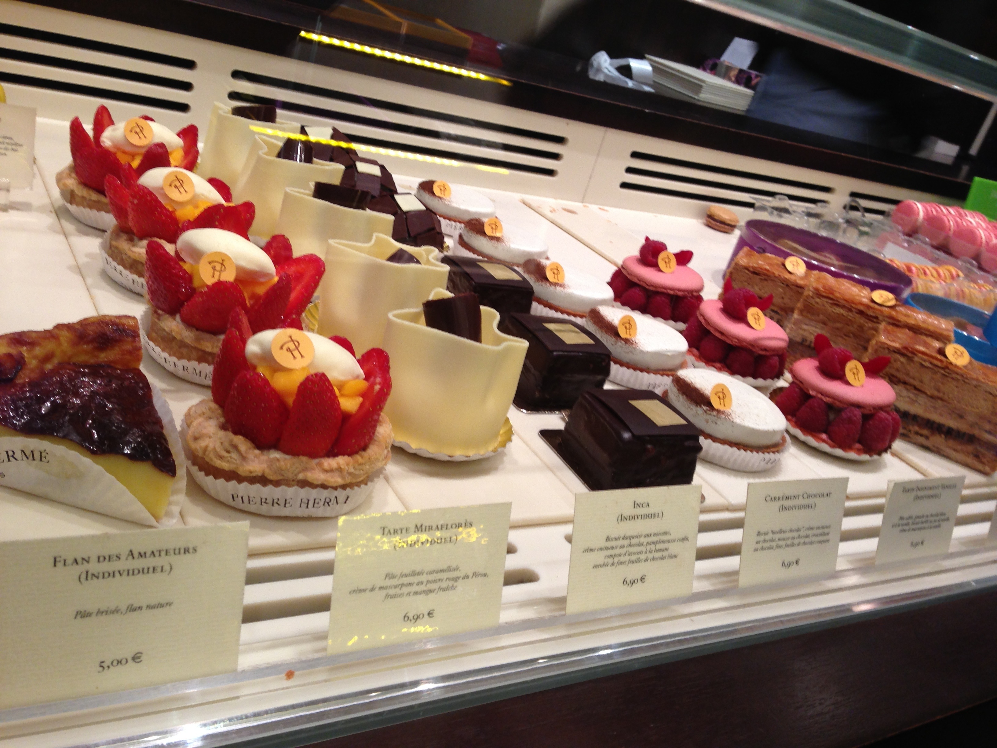 We then visited Pierre Herme, which proved to have some very nice macarons (superior to Laduree) and beautiful other desserts. I quite liked it. And the millefeuille I bought was very good – but about one ounce of chocolate away from being the best dessert of the trip.