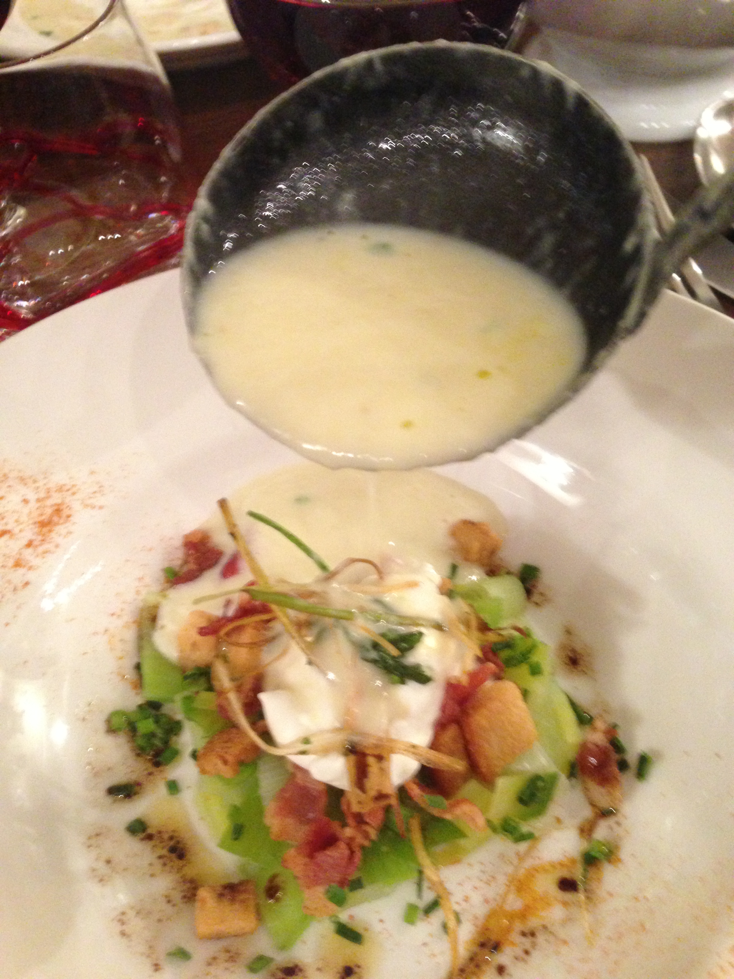 Appetizer was perhaps the most complex vichyssoise soup I’ve ever had … no … after further thought, make it the best. Plain and simple. Sorry a, this one is taking GTC’s to the cleaners … Plus, the family-style giant terrine worth means we could go back over and over. So delicious. Easily the best soup of the trip.