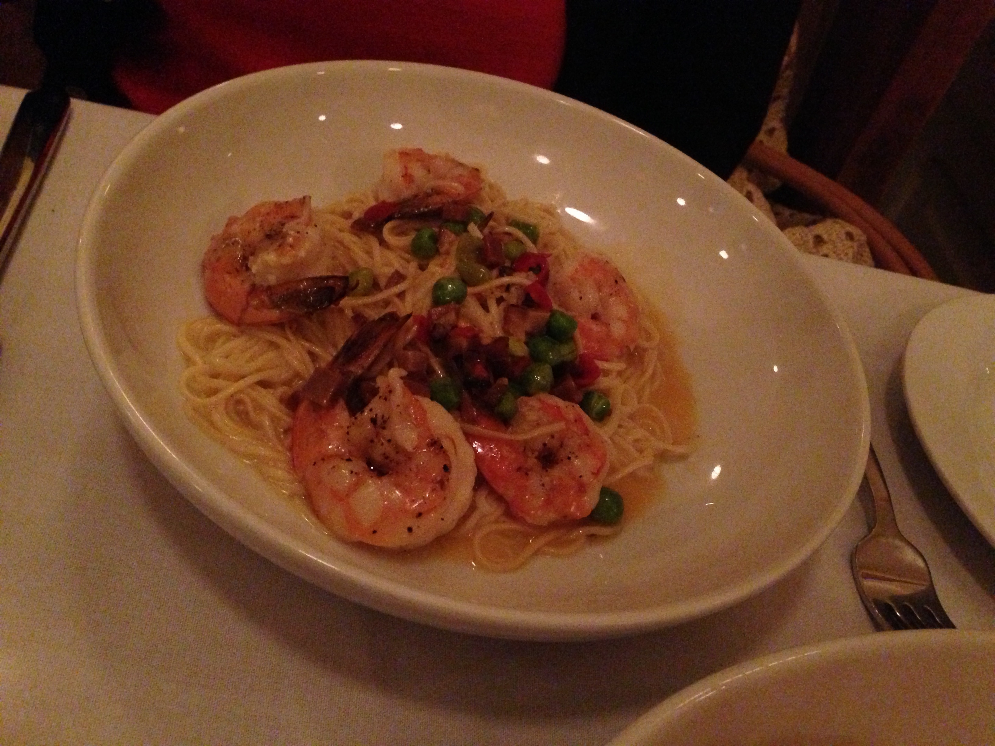 t says: for our last hurrah, we went to cute little restaurant Patois. Well, actually we pregamed first at La Petit Grocery, now holder of “The Best Beignet in New Orleans” (and the best wine we had on the entire trip!). Patois was tasty. g did a nice refreshing market salad with pumpkin seeds, and followed with a shrimp over angel hair pasta and buts of love bacon. I went with sweetbread and rabbit-stuffed-with-boudin which were both solid performers. All-in-all another good meal (but not quite besting NOLA’s Cochon)
