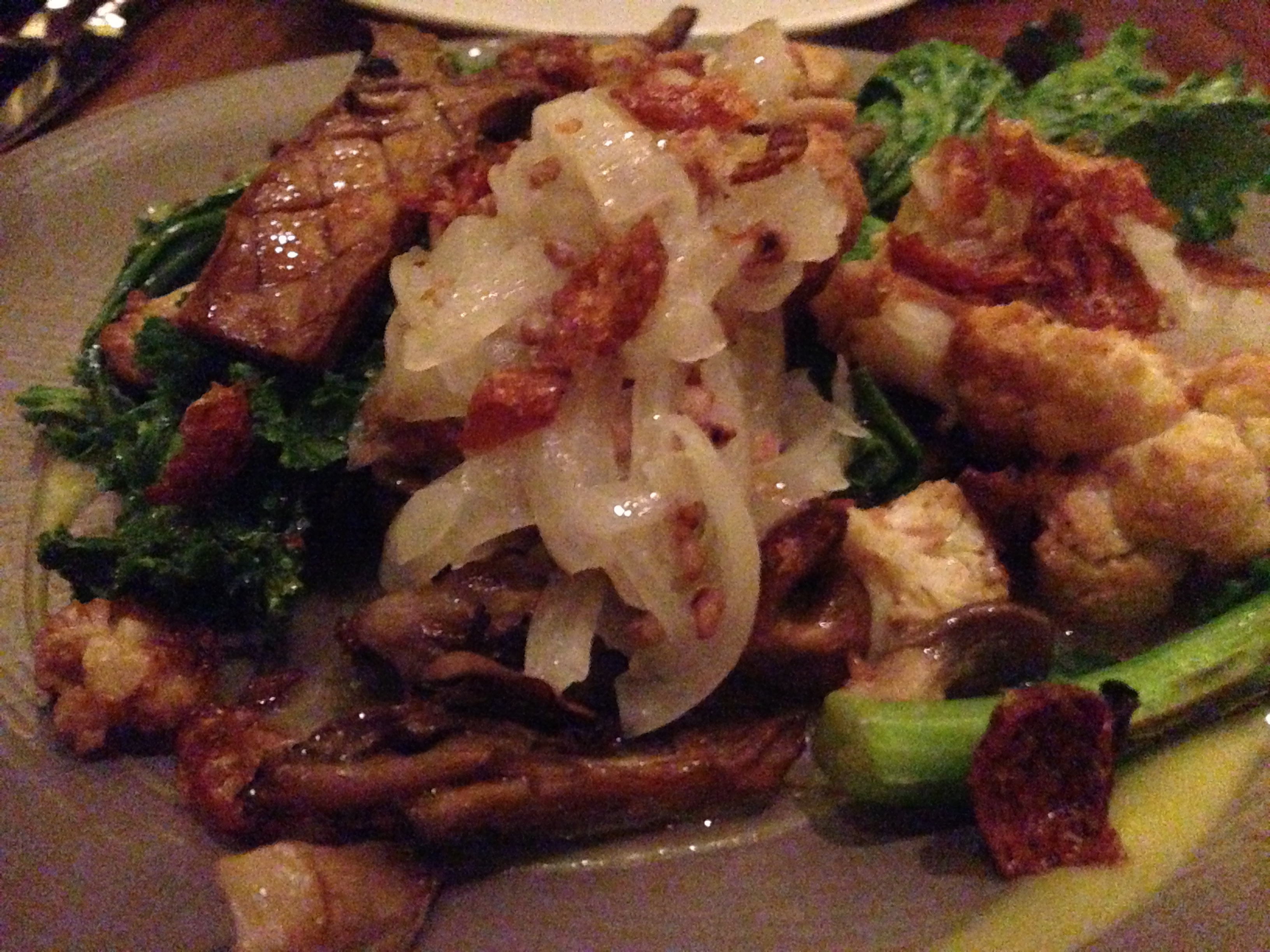 to beef up the roughage of our meal (ha ha – good joke, right?), we went with the fairly expensive vegetable plate (21 dollars!!) There was no way it’d be worth it, right? WRONG. This dish of vegetables was quite filling, with umami bombs (mushrooms), good bitter greens, sweet onions (g love-love-loved the onions), and a reminder the i need to cook more cauliflower. Vedge better watch out, because this stood up to the beef dish, bite for bite.