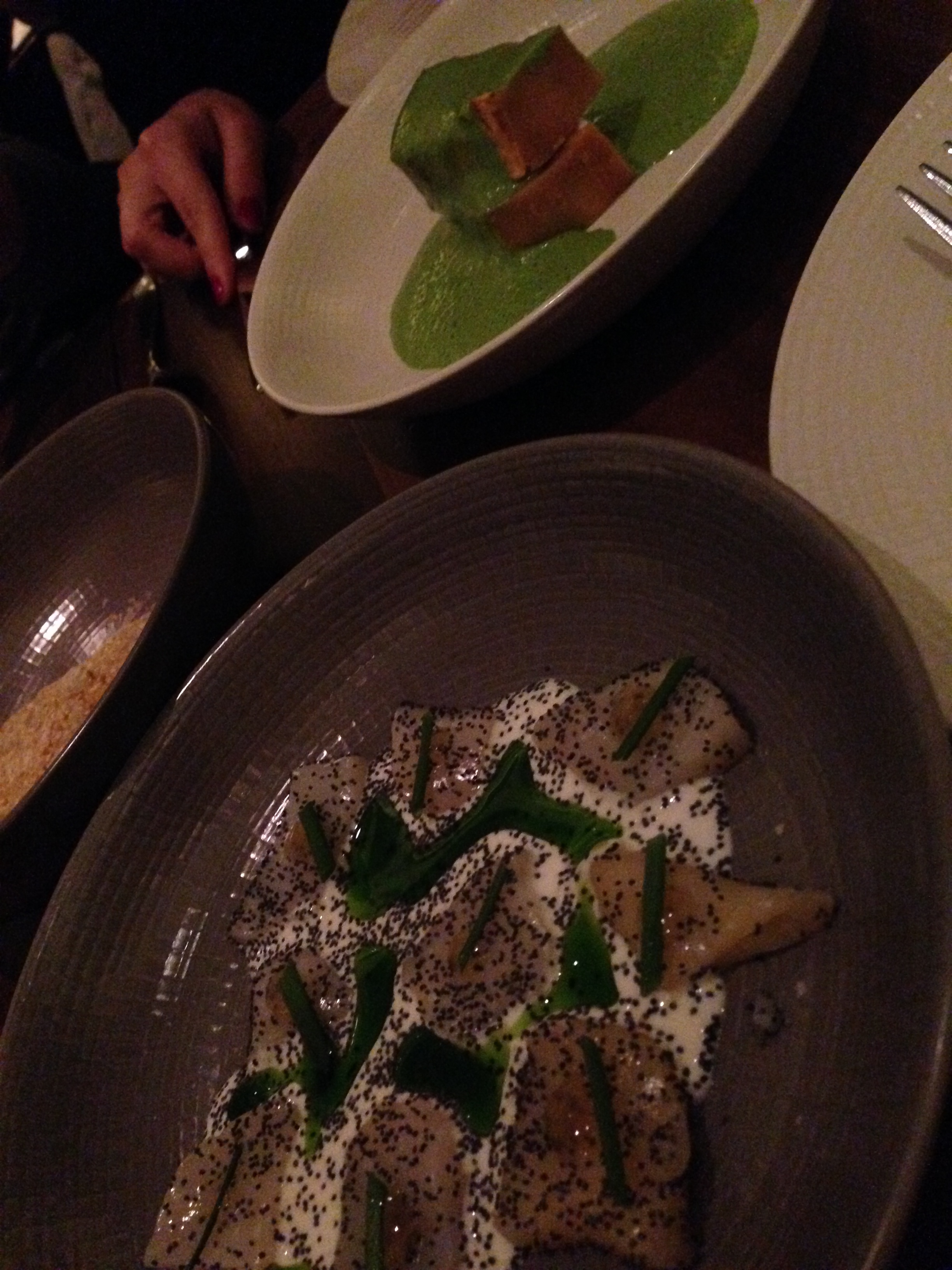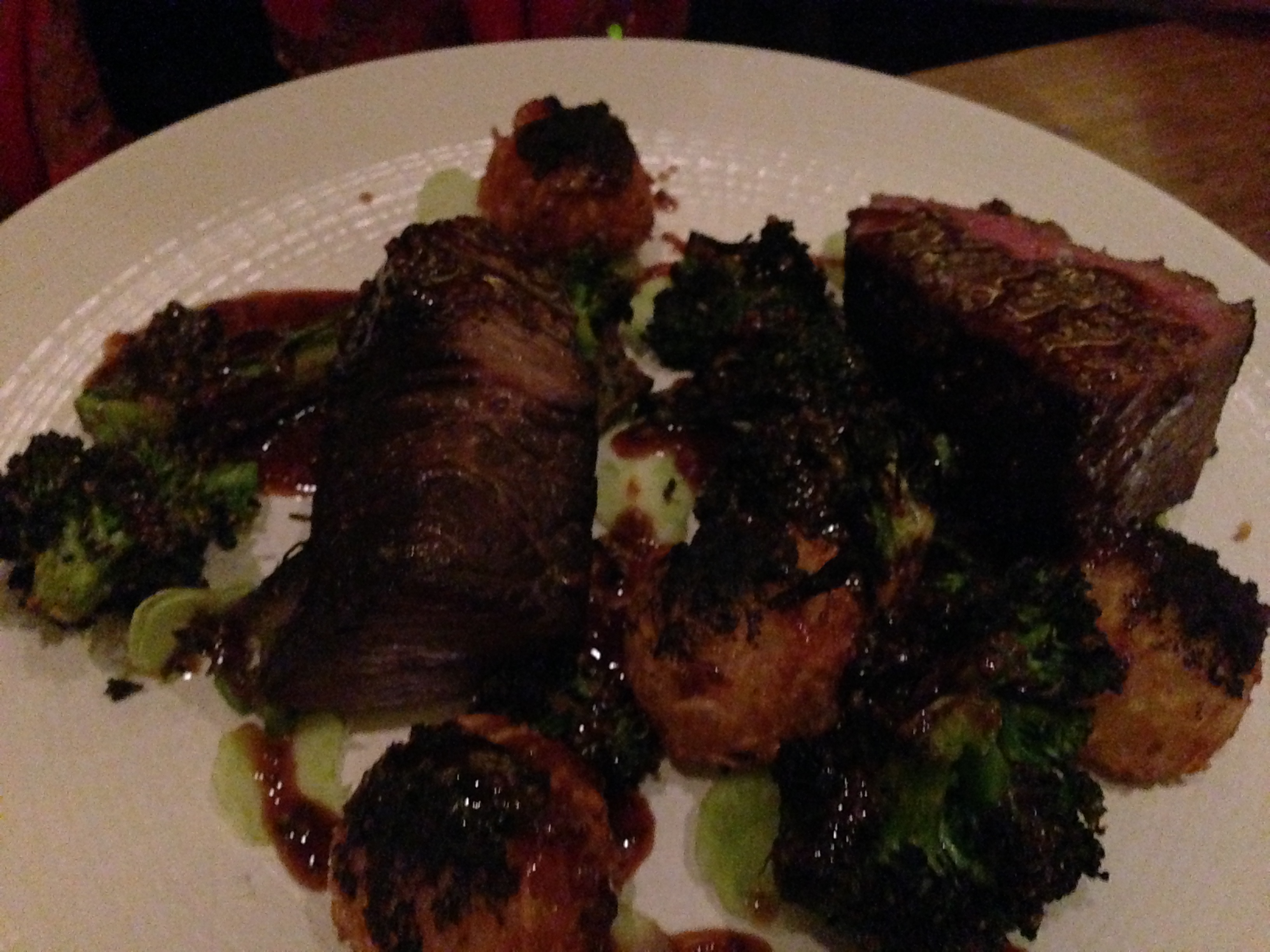 among our first courses included the above pictured the scallops and the lobster terrine “special”. We find the scallops to be one of the more unique appetizers at Serpico – that buttermilk sauce spiked with oil is tres addictive (I totally caught a eating it by the spoonful). a joins: And the lobster terrine was hoarded by v, so it musta been good … and the [unpictured ] sunchoke salad is not yo’ mama’s salad and worth a place at your table …
