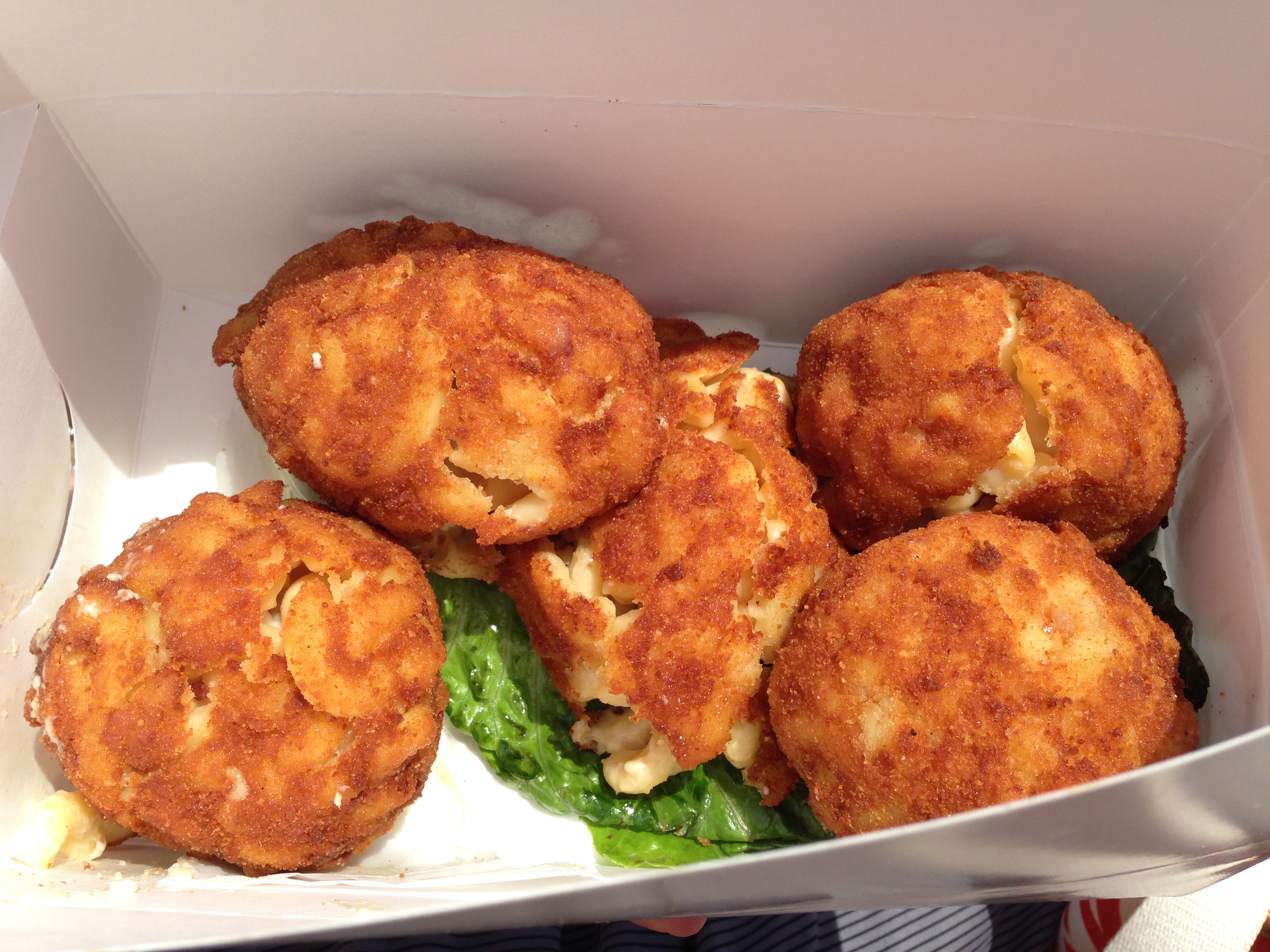 So … let’s say you were sitting on the beach, baking in the sun, getting some rays in your bathing suit. As you think to yourself, “gee, I’m kind of hungry”, what foods might pop into your mind? Perhaps some boardwalk pizza, or a sandwich or fruit you may have packed, or maybe the bathing suit has made you self conscious, and all you’ll take in is water … Well, this is the opposite of all of those options: mac and cheese balls from Steve’s Grilled Cheese in Sea Isle City. They guys were absolutely crazy. Never have I seen g lose control over a fried food item. Sure, they’re sloppy, and sure, consuming any more than 1 will cause an instantaneous heart attack, but there’s nothing like a fried ball of cheese and starch. And the best part: I believe you can even have these suckers delivered to the beach! OH – did I mention there’s a cheese dipping sauce, too?