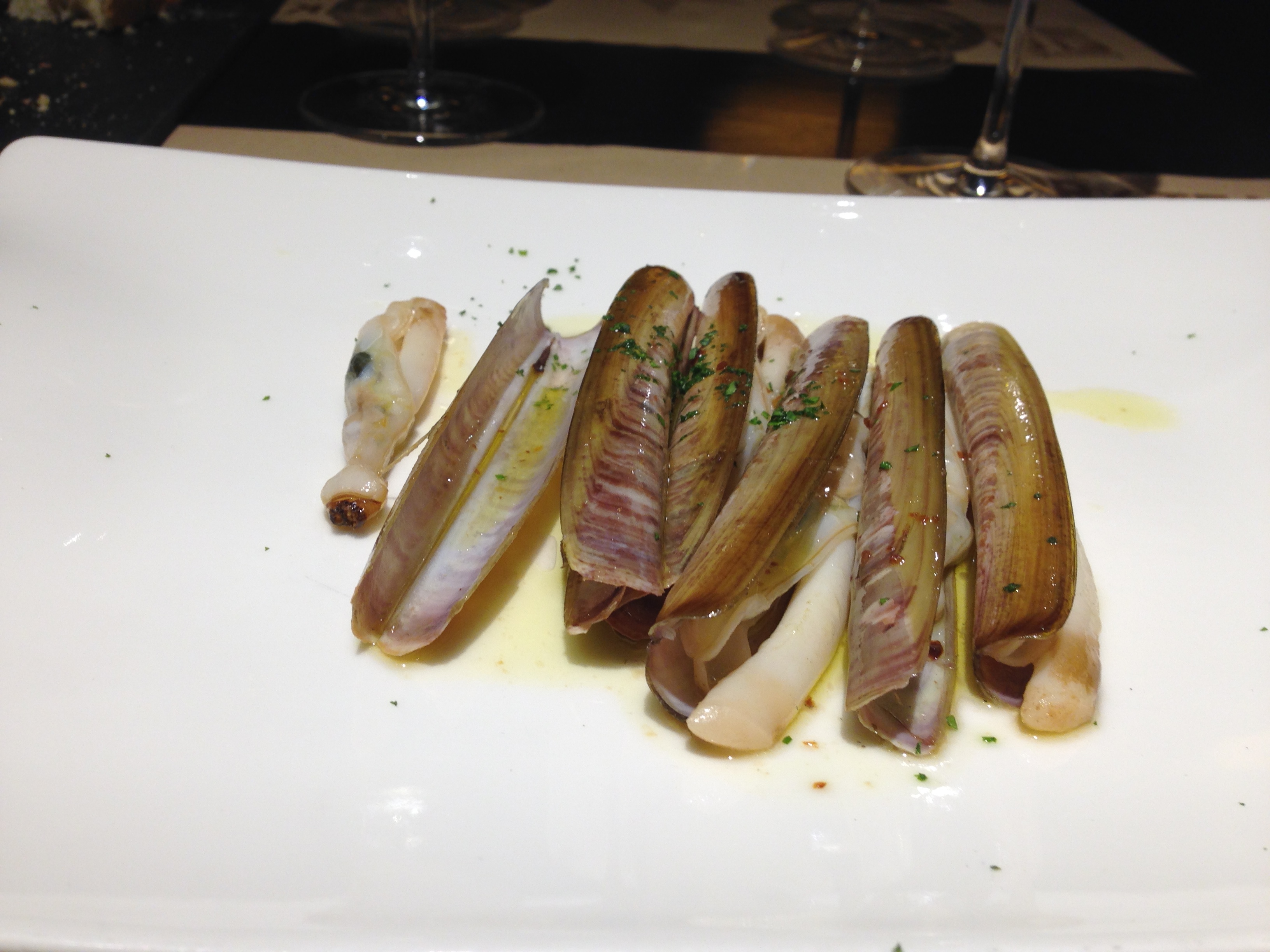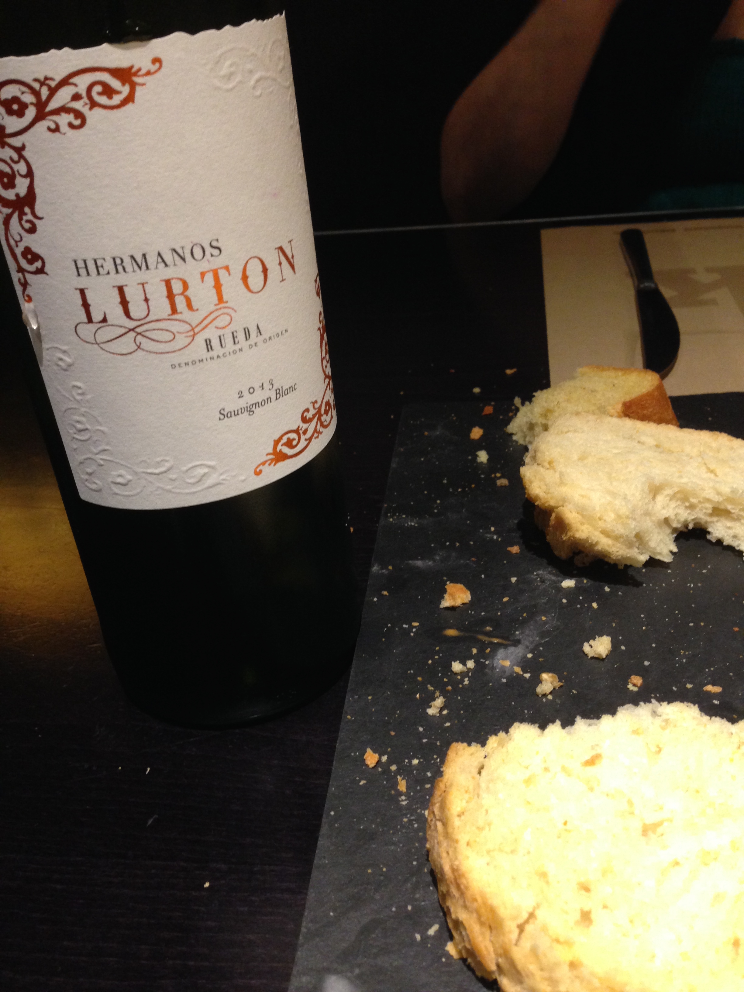 People always say “wine’s so cheap in Europe”. That’s not true – it can be expensive, too! It just so happens that everyone drinks the cheap stuff. For example, take this 13 Euro bottle of Rueda Sauvignon Blanc. Cheap? Yes. Complex? No. Tasty with food – ABSOLUTELY! We’d buy it buy the case, as it’s only 4 Euro a bottle if purchased at a store in Spain (that’s right! restaurants mark up wine in Europe, too!). Oh, and check out that bread – would you believe that it was REALLY spicy? No? Fine – don’t believe me – but when the waiter put it down, he said, in English, “and this bread is spicy – if you don’t like it, that’s ok, we will take it away”. Well, we liked it! We liked it a lot! Each time it was so surprising to bite into bread but then have this insidious onset of mouth heat. Good stuff, indeed!