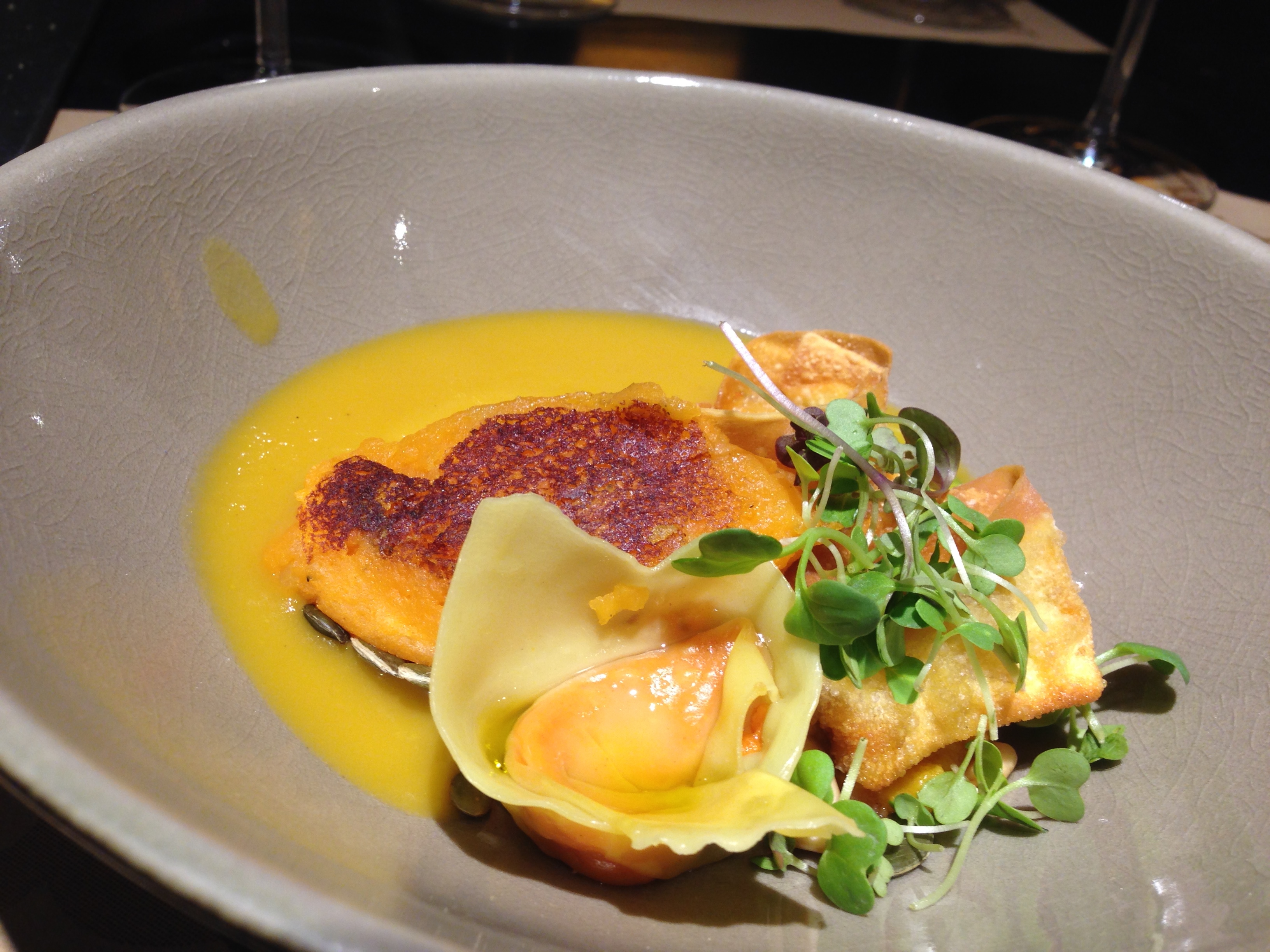 … and much fussier stuff, like this “pumpkin mix” dish. But just wait a sec – as fussy as it was, it was. There were steamed and fried gyoza that really gave you that classic Japanese/Asian gyoza flavor (but were filled with pumpkin!!) as well as a soup and puree that were wonderfully flavorful with just a little bit of spicy kick.