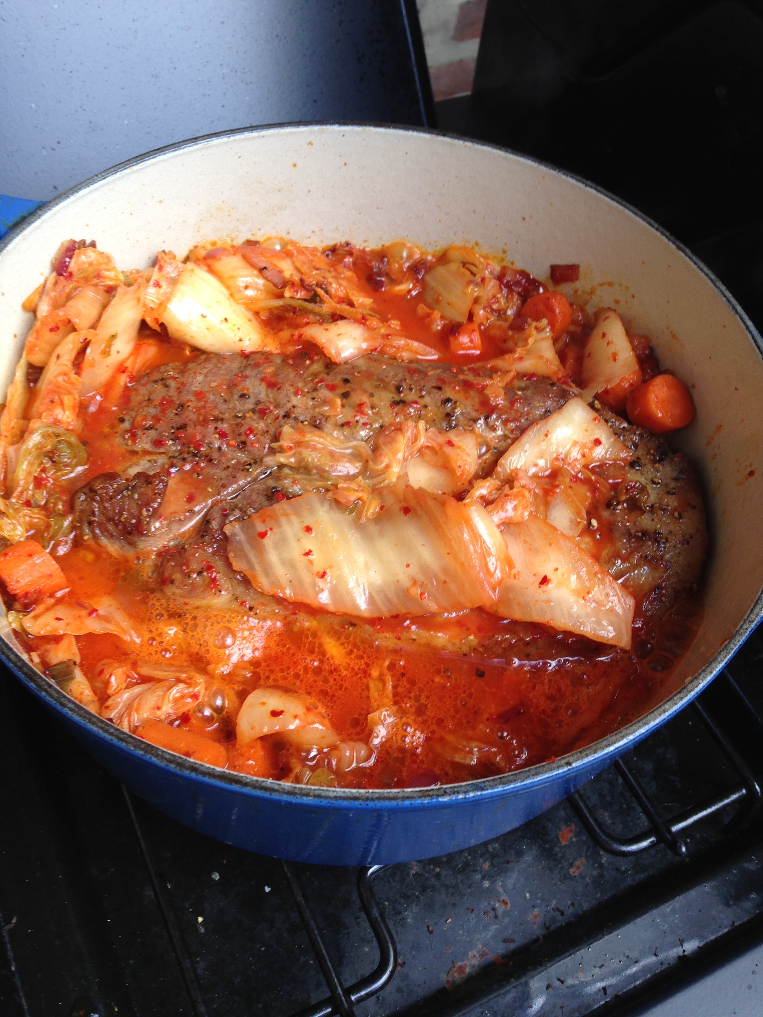We held a farewell ceremony the other day … a farewell to summer. While some people hold barbecues, g and I do something a little different. You see, there is a dish that we can only make outside due to how much it reeks, and that is kimchi jige. At the risk of patting myself on the back: it was damn delicious. If you have access to kimchi, shove it in the fridge for at least 2 weeks (sealed), and make yourself some dinner … outside …
