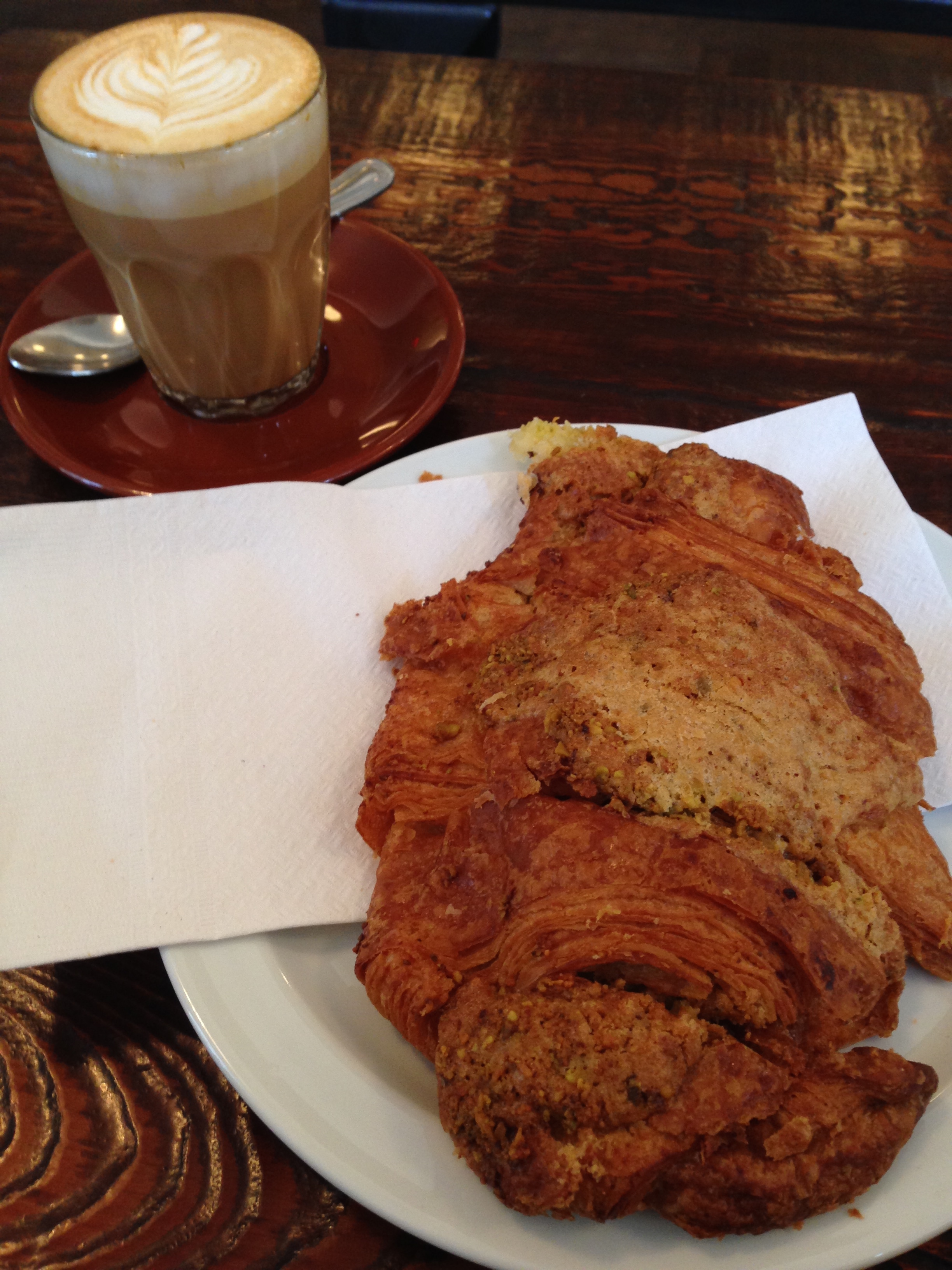 … here is that pistachio croissant (and cortado) I raved about … pictures do not do it any justice at all.