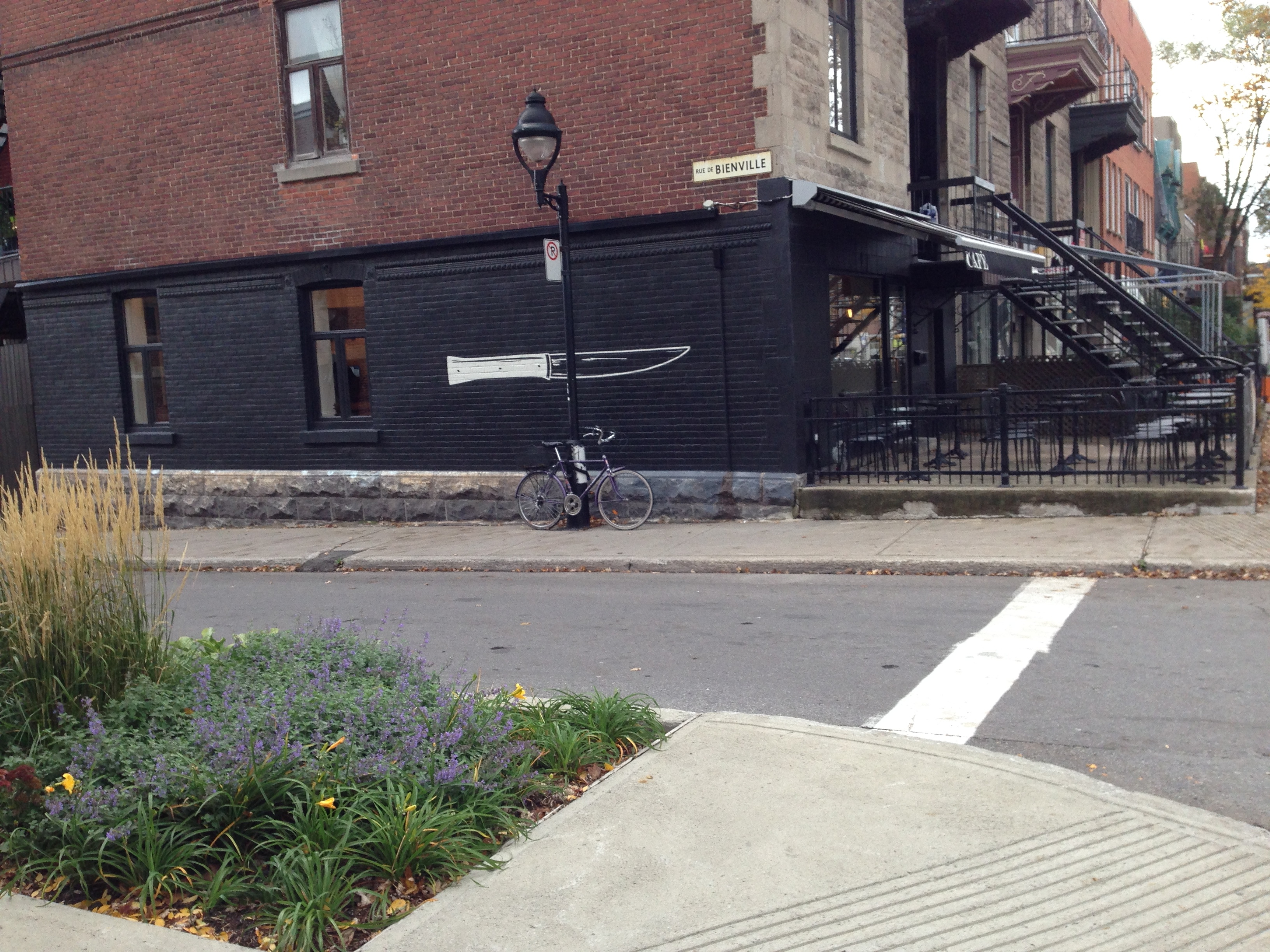 We visited Le Couteau Cafe. French for “the knife” (and given my affinity for knives, how could I not go there?), Le Couteau was FABULOUS. It is probably the best cafe we’ve ever had the pleasure of visiting (Paris, Vienna, US). You know you’re at the right place if you see a giant knife on the outside of the building …