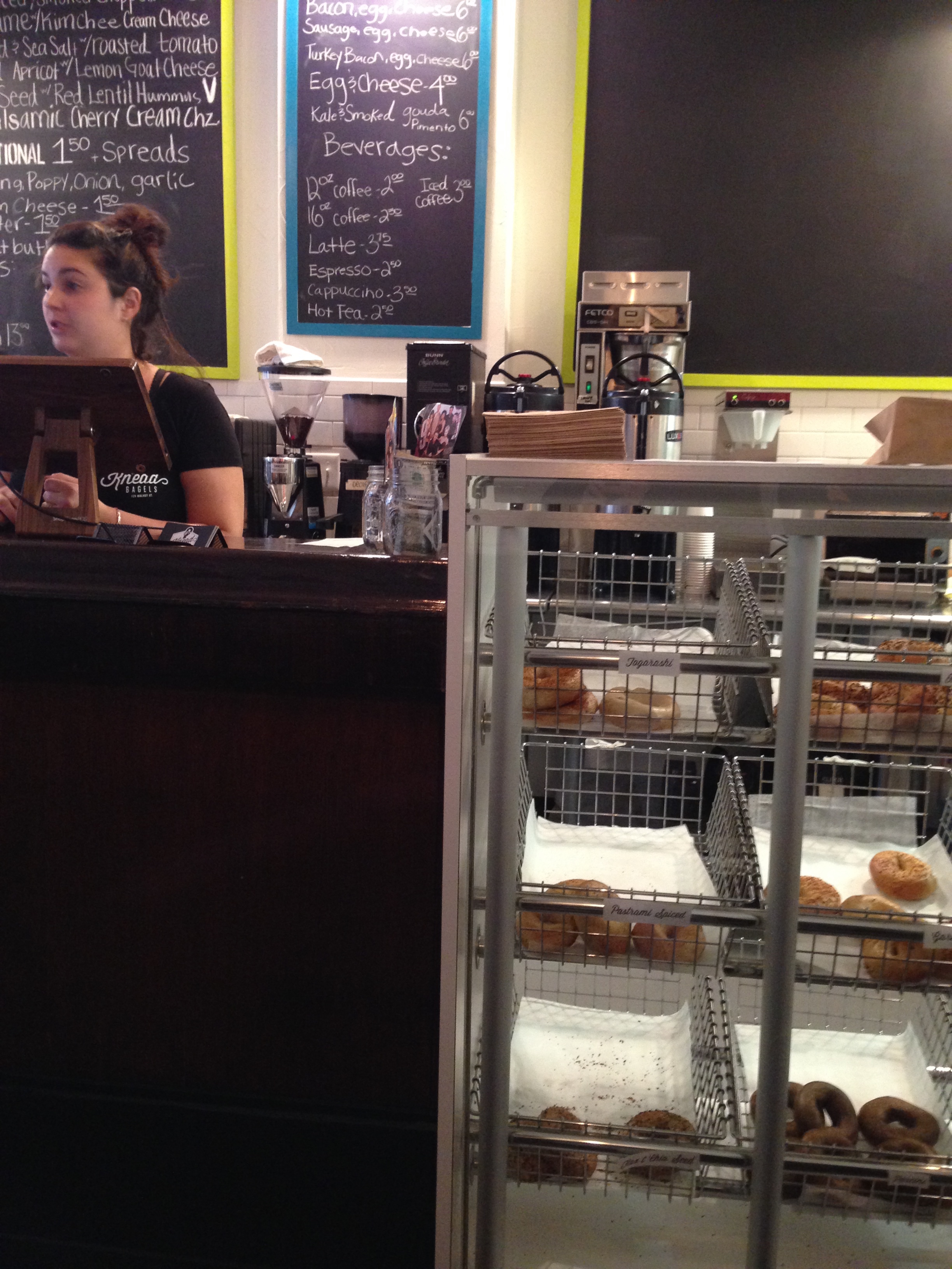 t says: Sooo, I was a little bored-and-hungry after work the other day, and, having read all about the coverage on foobooz, decided to venture on out to Knead Bagels.