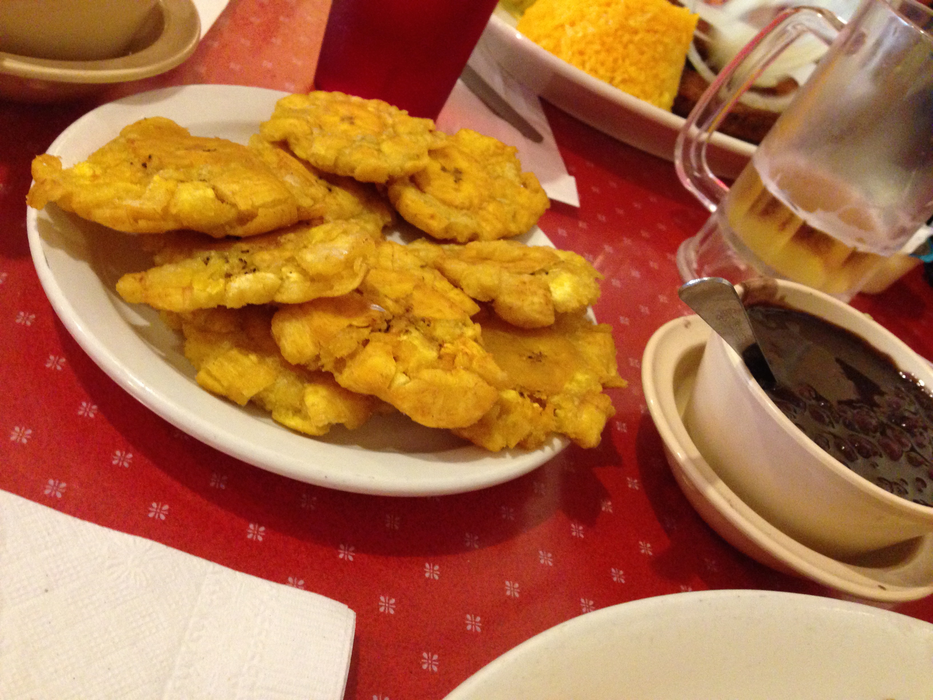g started us off with some tostones, which were done fabulously. MAN I wish I cooked with more plantains …