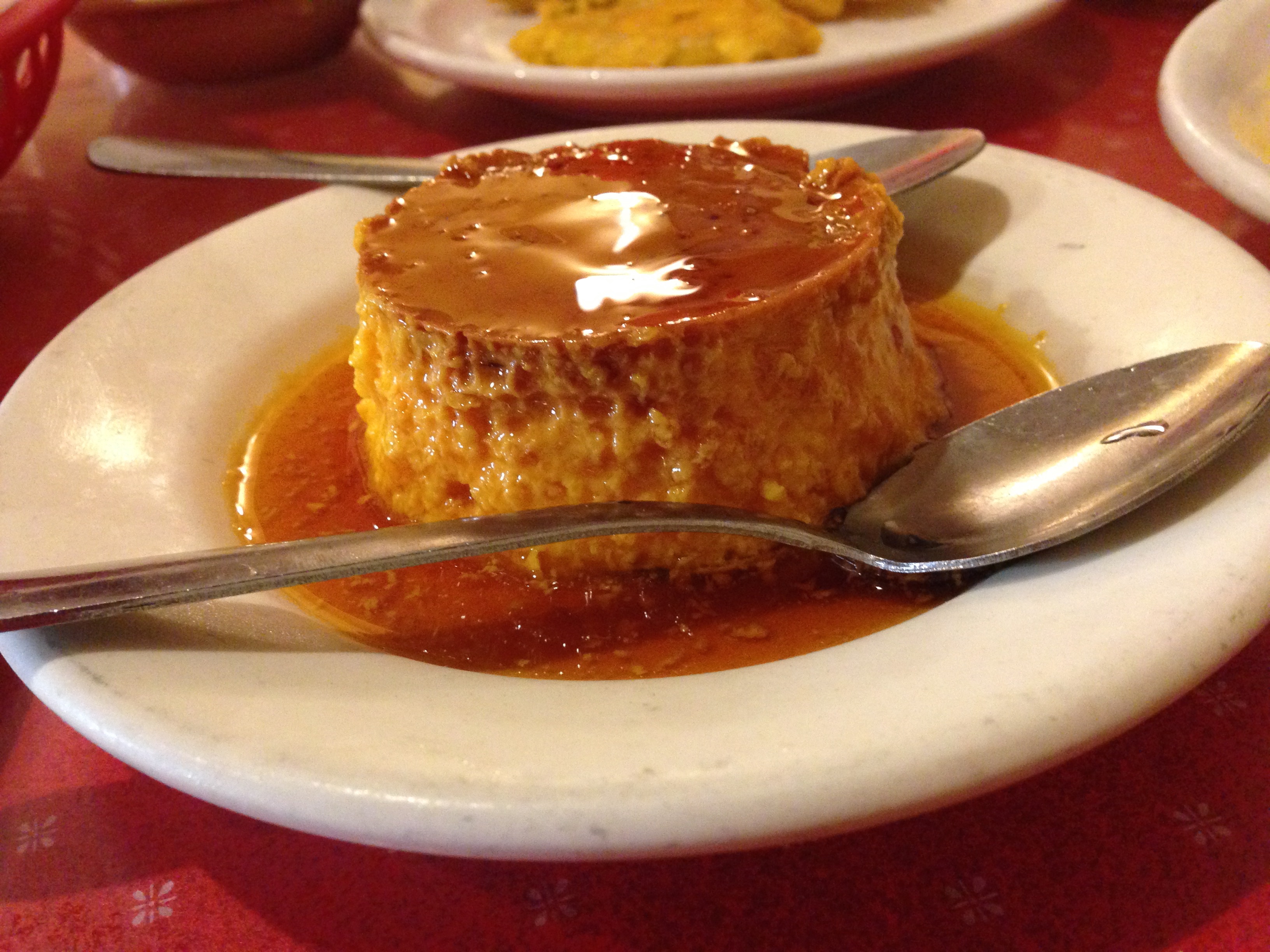 any why not have some creamy delicious flan to finish off the meal? it perfectly slid into the empty spaces of my stomach to push me to an almost-uncomfortable level of fullness. Thank goodness we ate so early – it’d take me until bedtime just to digest it all!