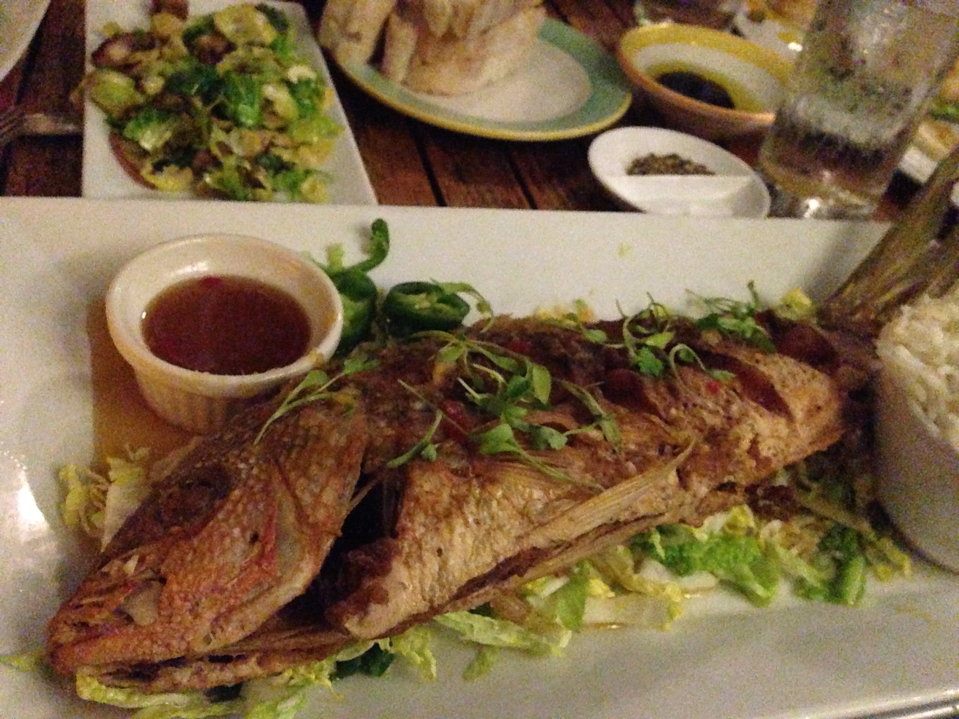 And our last meal in Key West was at Nine One Five (i.e. 915 Duvall). In general this restaurant was like every other Contemporary American restaurant we’ve ever been to. And yes, they were trying very hard to out-contemporary other places (i.e. Brussels sprouts, pork belly, random grains were in abundance), I decided to see what they’d do to a whole fish. Holy crap this yellowtail was delightful. They presented me with the whole fish, gave me a strategy session on how best to conquer it, and off I went. All my dinnermates ventured a nicely done scallops dish … but I suspect it probably wasn’t quite the caliber of Talula’s Garden, so it wasn’t something worth writing home about …