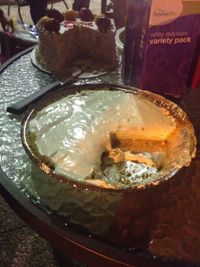 It’s totally not fair to say that this was “the best” dessert – but I am a sucker for key lime (really – I love key lime pie) and I’m also the one behind the keyboard, so bam! I just did it. It was made by an adsz-lurker (and I mean “lurker” as in “person who reads but doesn’t make their presence be known”, not “super-creeper-we-need-to-get-a-restraining-order”) who confesses that it was a particularly easy pie to make. I don’t know if it was how refreshingly zipping it was in comparison to the unctuous pig I had just eaten? Or maybe it was its light creaminess that I liked on a warm summer night? Whatever it was – if she sends up the recipe, I’ll surely post it here.g’s mom conquers bacon-chocolate cupcakes!