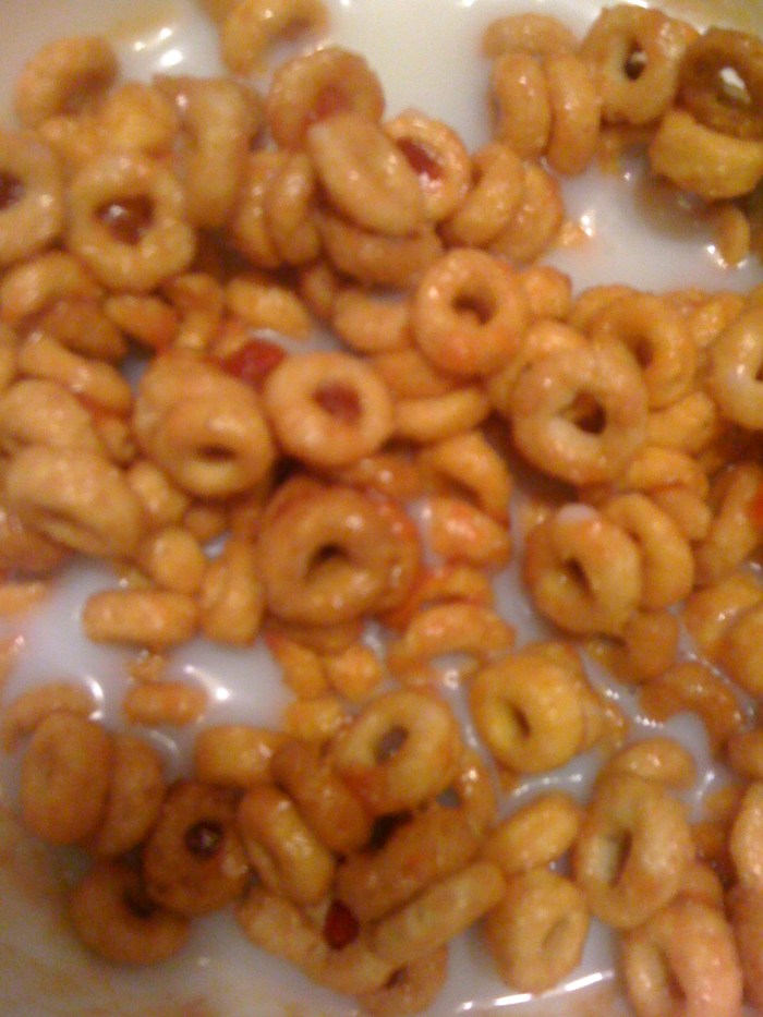 t says: The other day I wanted lunch. But there was no food in the house. I spied some PB and J, so I figured that I’d make myself a sandwich. Unfortunately, I forgot about a critical ingredient – there was no food in the house … including no bread. Darn! I cursed my luck as I stared at the jars of PB and J sitting on the counter. Also on the counter was a box of Multigrain Cheerios (left out from earlier in the morning). And then it hit me. What if I had PB and Jelly cereal. Blasphemy, right? But why’s it song wrong? Cereal’s kind of like a grain! And it’s fortified! Maybe it’s even better than bread! So here’s what I did.