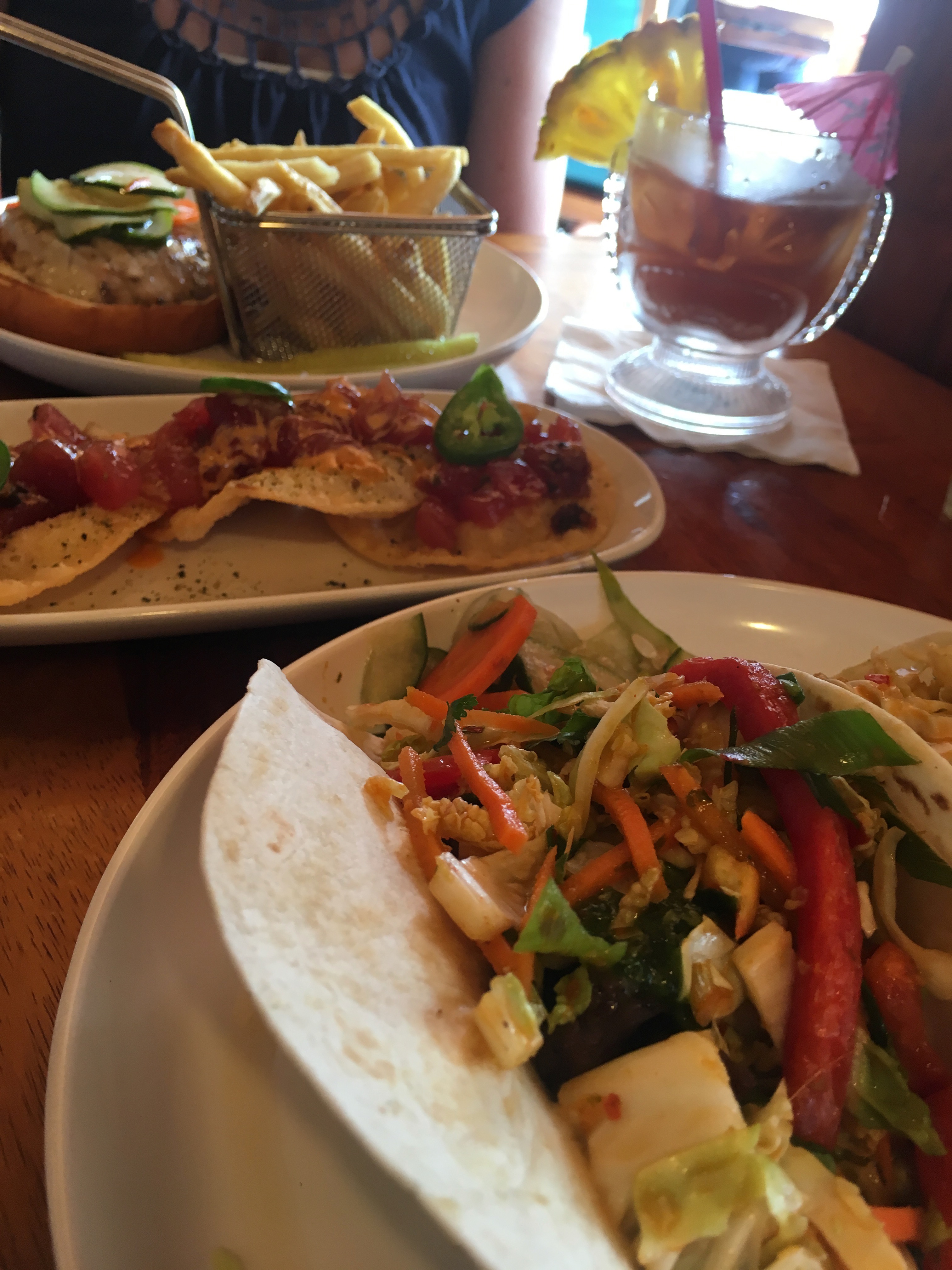 One of g’s dreams was to drink an umbrella-laden drink by the beach. Boom – mission accomplished. Mai Thai! But to follow it up: you have to go to Duke’s Waikiki. It’s essential. The food isn’t necessarily authentic, but it is quite tasty, including multiple food groups (veggies!), and served an atmosphere that’s just so classically tourist-Hawaii that to miss it would be a crime. Sit back, relax, eat some raw tuna served over puffed rice, and bask in the glow of the Hawaiian sun!