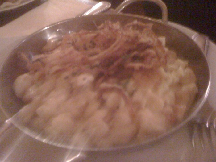 This is a horrible picture, but it illustrates hearty Austrian cooking: "gnocchi" covered in cheese and bacon. What more do you need than starch, cheese, and bacon?