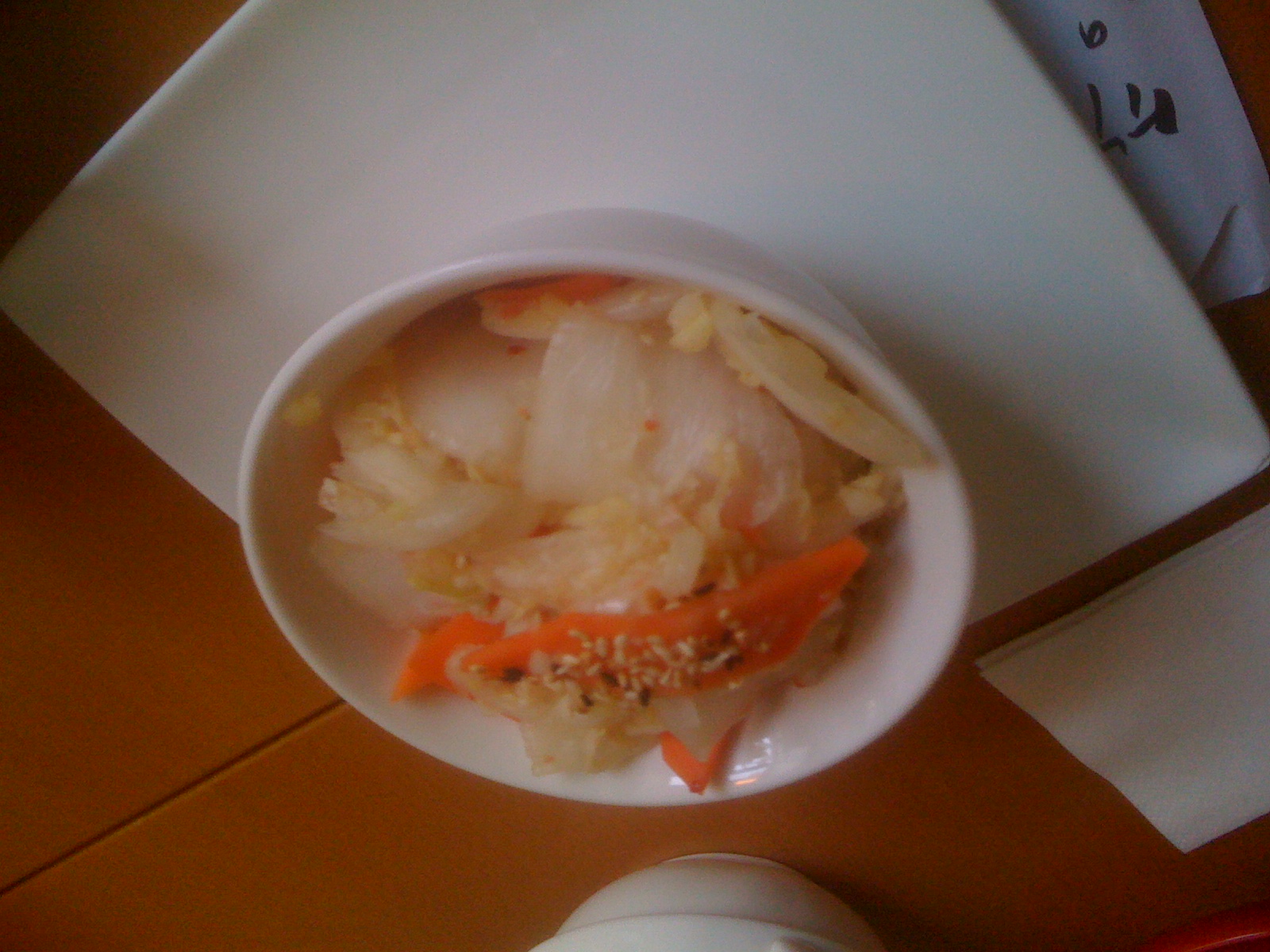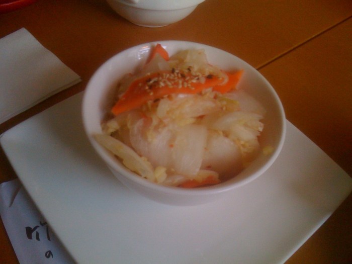 We did hit up a couple of Asian restaurants in Vienna. This was from our first one. It's apparently kimchi. At the time, I wondered why it was that it appeared so anemic and suspected that maybe the Austrians couldn't handle the heat, preferring instead garlic and vinegar. Apparently this "white kimchi" is a separate style of kimchi altogether and can be found in Korea along with normal kimchi! (Thanks for the 4-1-1 mom)