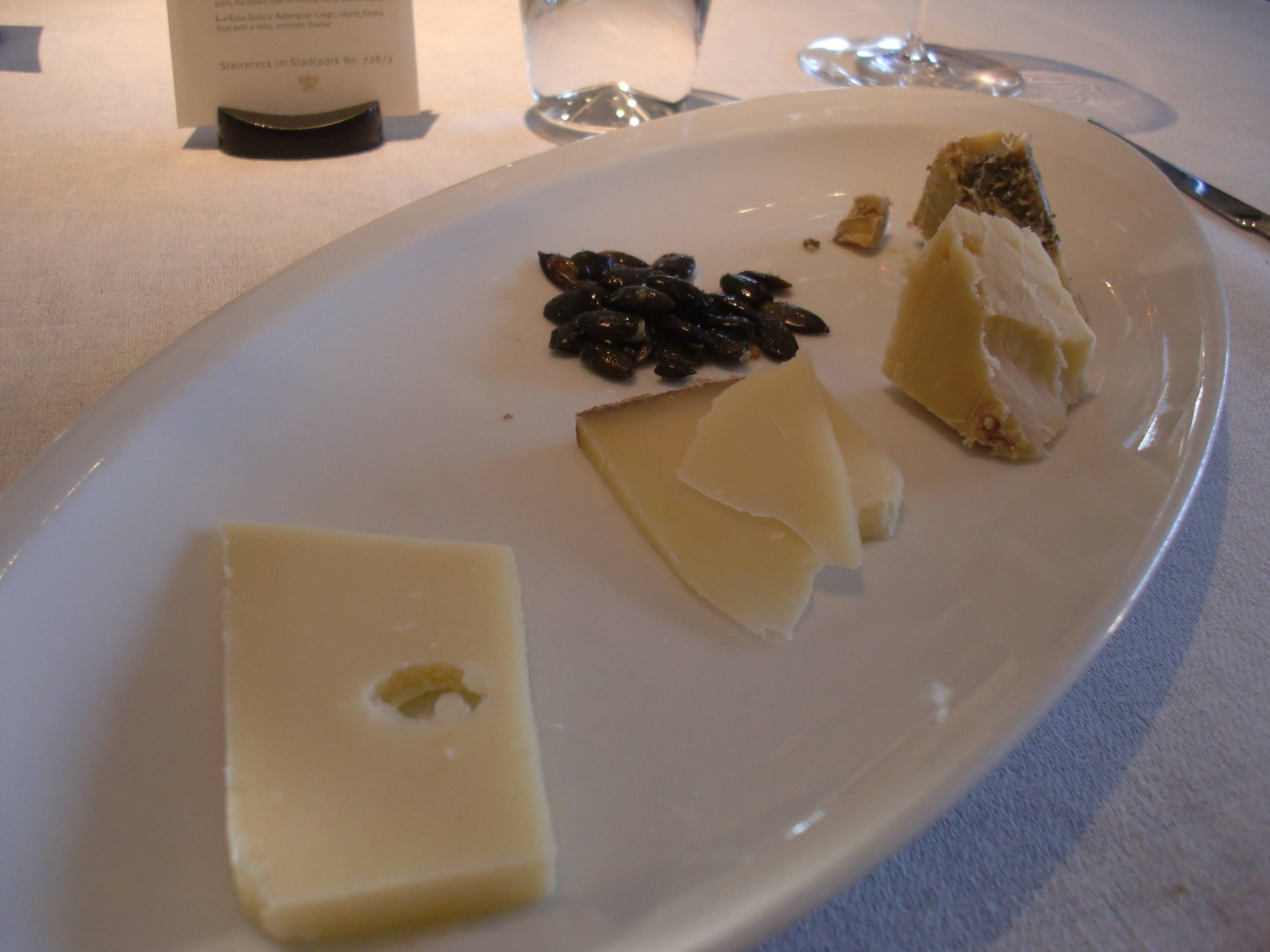 t says: When g and I visited out friend drb in Vienna, we went to Michelin-starred Steiereck for a cheesey luncheon, missing out on the opportunity to eat their for dinner. Well … drb went back and conquered their tasting menu. While he has not given me any comments, he has given me the pictures. So why not just post them here? That’s right, there’s no reason: