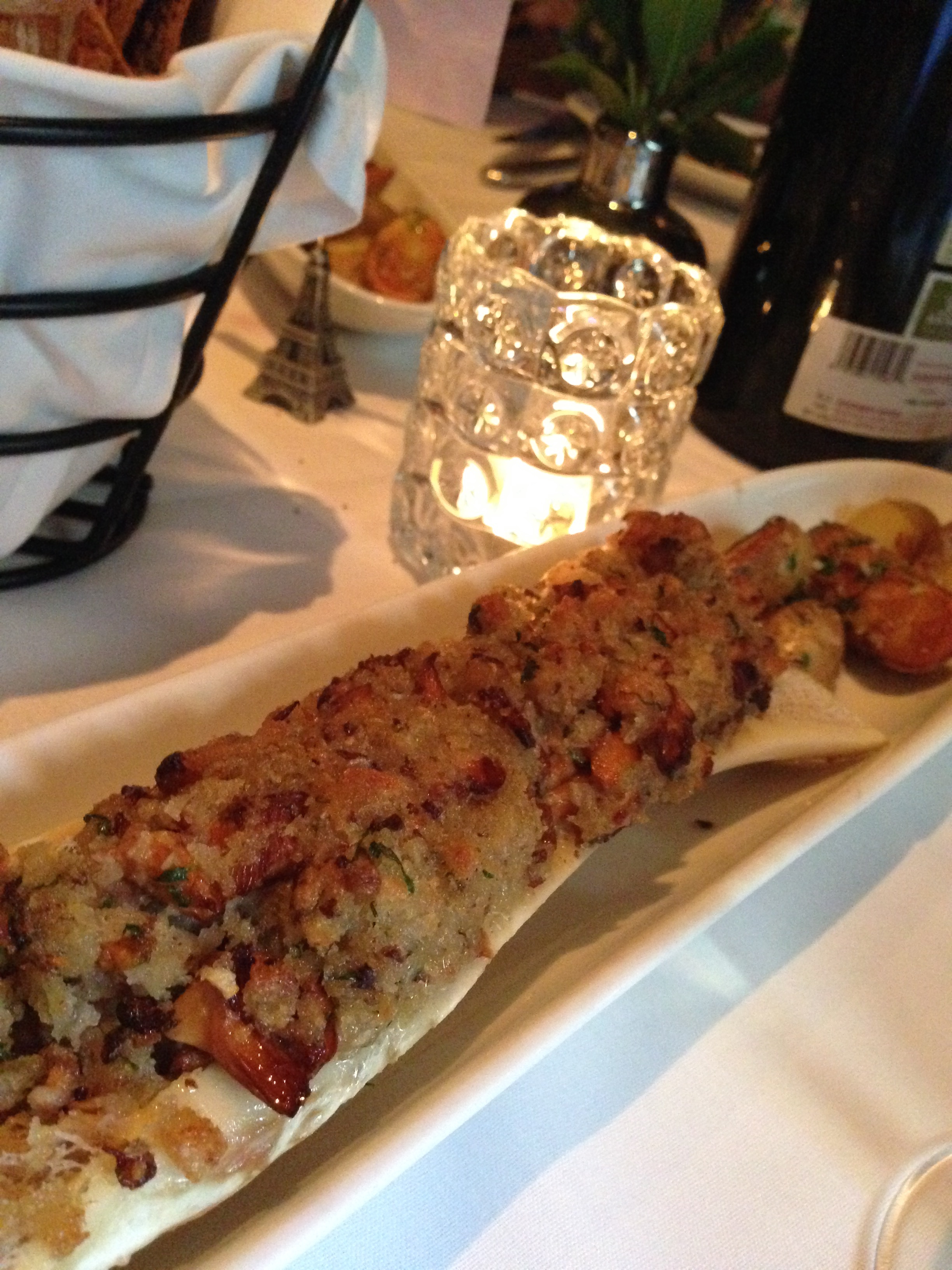 The most logical place is to begin at the beginning: we went to Bibou – I mean, Le Cheri. Having caught a “special” two weeks at Le Cheri where they were bringing back “THE bone marrow” and “THE pig’s foot”, we had to go. Just in case you didn’t know, Bibou, long before they were fixed price, had these two wonderful dishes frequently on their menu (the latter moreso than the former). So dedicated was v’s and my love for the pig’s foot, that despite the number of times we went there (probably in the double digits in total), both of us combined have probably only ever not ordered the pig’s foot twice. Seriously. But, we’re getting ahead of ourselves, as the picture above is not of the pig’s foot, rather of the bone marrow. This bone marrow is done up a little differently than most I’ve encountered – the marrow having been done up with bread crumbs to form more of a “stuffing” before being reconstituted in the bone – so lovely!
