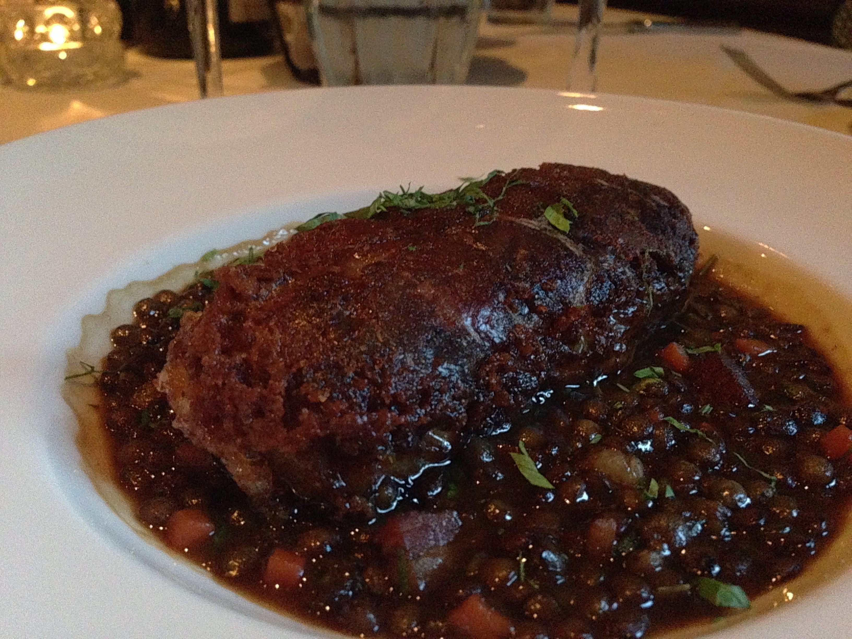 … the mother-flinging pig’s foot? NO! NO WAY! Because it is perfection. Unctuous meat: check. Dose of foie: check. Fiber (lentils): check. Veggies: … there are some pieces of carrot there … As kp, v, and I have said on multiple occasions: if we could bathe in a single food item it would be those lentils … It’s an oldie, but a damn fine goodie.